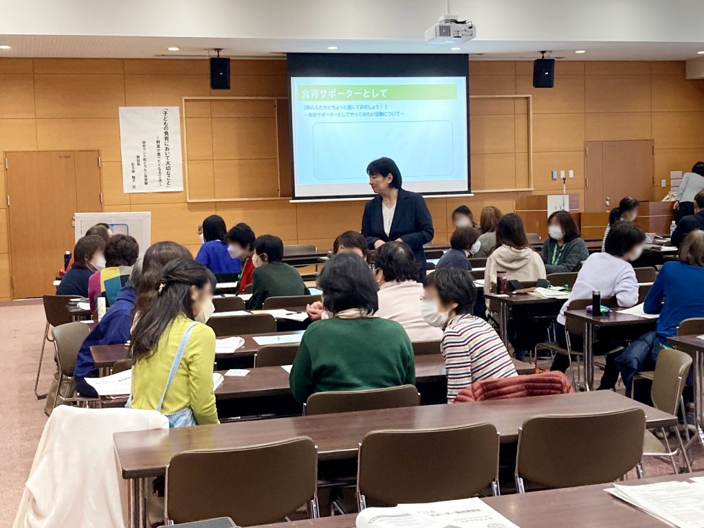 幼稚園や学童保育室での活動が多い食育サポーターの悩みは、野菜嫌いな子へのアプローチ。そのため食育の視点だけではなく、日々さまざまな子どもたちと関わる保育士に、幼児期から小3ぐらいまでの子どもの発達や食事場面での言葉がけ、接し方のポイントなども教えてほしいとのご要望でした。