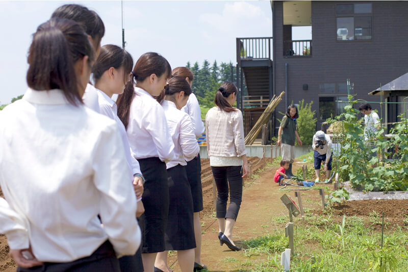 本日、埼玉県の朝霞どろんこ保育園にて、新卒向けの会社説明会を実施いたしました。最高気温を記録する暑さの中、保育士を目指す学生さんたちが、古民家風の園舎に。なんと、遠方、静岡から高速バスで来てくださった学生さんもいらっしゃいました!