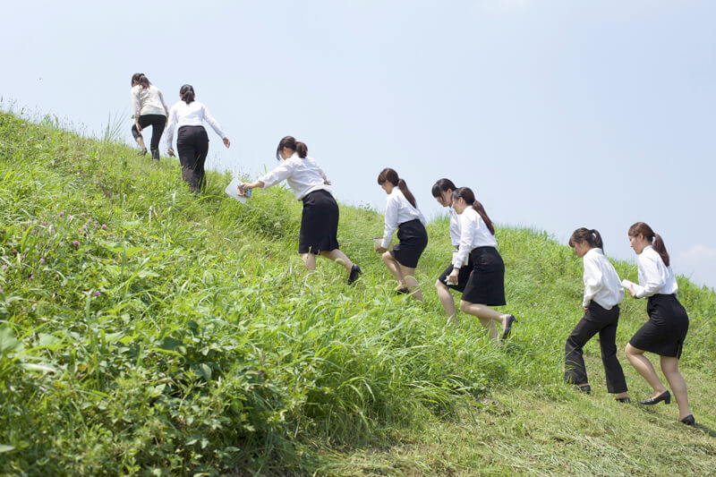 人事齋藤を筆頭に土手を登っていく学生さんたちの姿は、これが会社説明会?と思うような一風変わった光景でしたが、まさに、朝霞どろんこ保育園ならではの会社説明会。