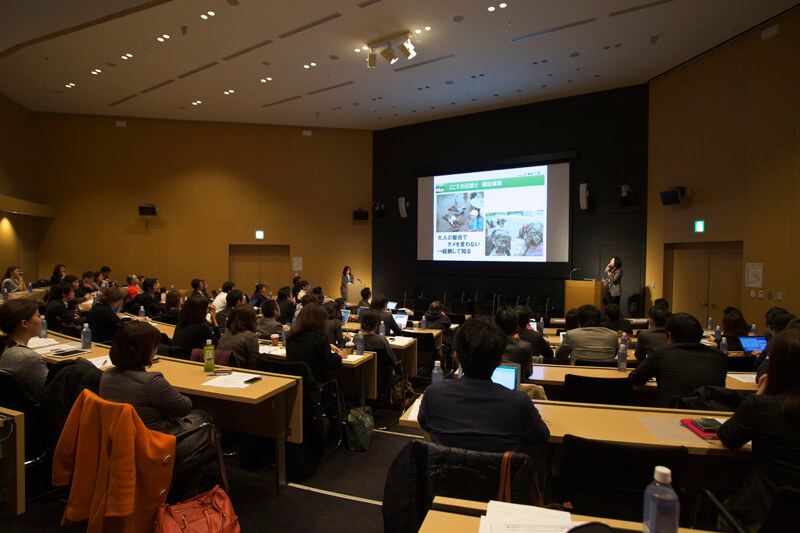 「にんげん力を育てる」と題し、どろんこ会設立エピソードや園での取り組みなどを交え、自己肯定感が低い子ども、自分で考えて行動できない子どもたちが増える昨今の日本を、保育の現場から変えることの重要性を訴えました。
