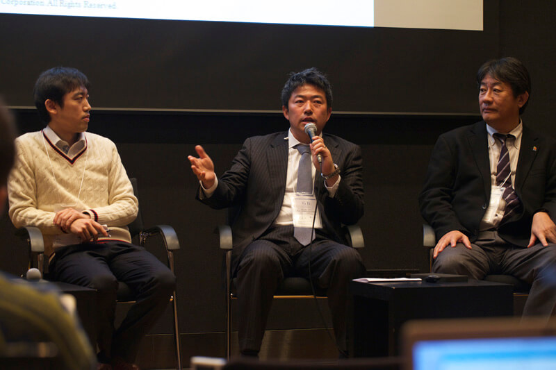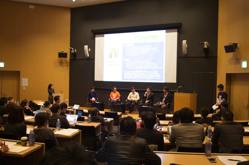 基調講演後のパネルディスカッションでは、ゴーエスト代表の高堀雄一郎も登壇させていただき、(株)AsMamaの甲田さん、(株)Kaienの鈴木さん、ミキハウス子育て総研(株)藤田さんらと、事業を拡大していく上での外部支援の必要性について語り合いました。
