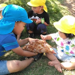 田んぼの準備が整ったら、育った苗を植えていきます(田植え)。梅雨や台風に負けないように祈りつつ、最も大事な工程の草取り(雑草とり)!稲にたくさんの栄養がいくように、お手入れを続けます。夏の暑さを乗り越えた稲が黄金色に輝くと、いよいよ刈り取りです(稲刈り)。