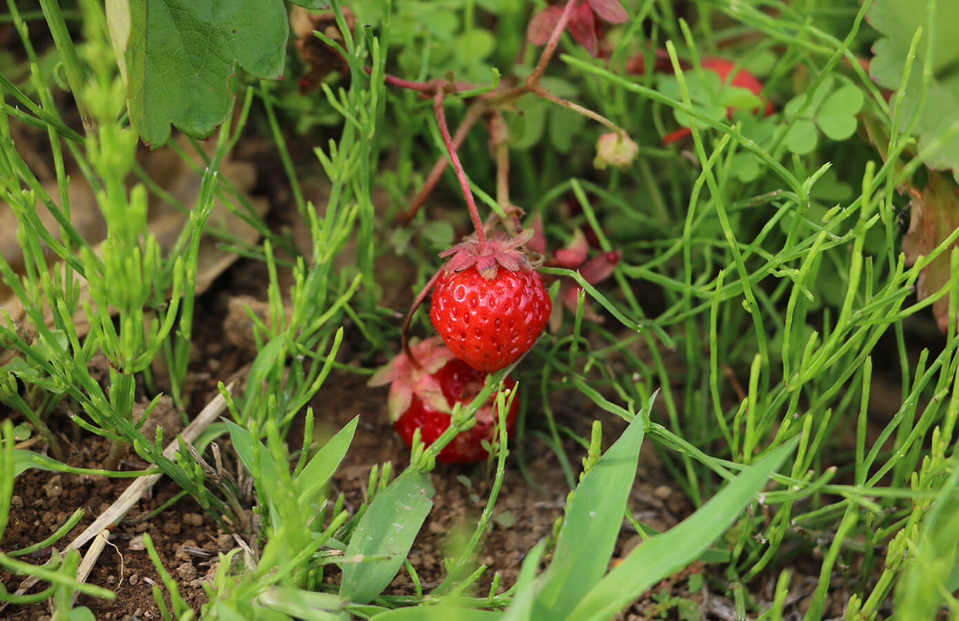 1階建て園舎により日陰となるスペースも少ないことから、日照量が必要不可欠な果樹もたくさん植えられています。みかん、柿、ブルーベリー、ブラックベリー、ラズベリー、イチゴ、杏・・・など、まるで果樹園のよう。水やりなどの手入れや収穫を子どもたちが行うことによって、日常的に自然体験できるようになっています。