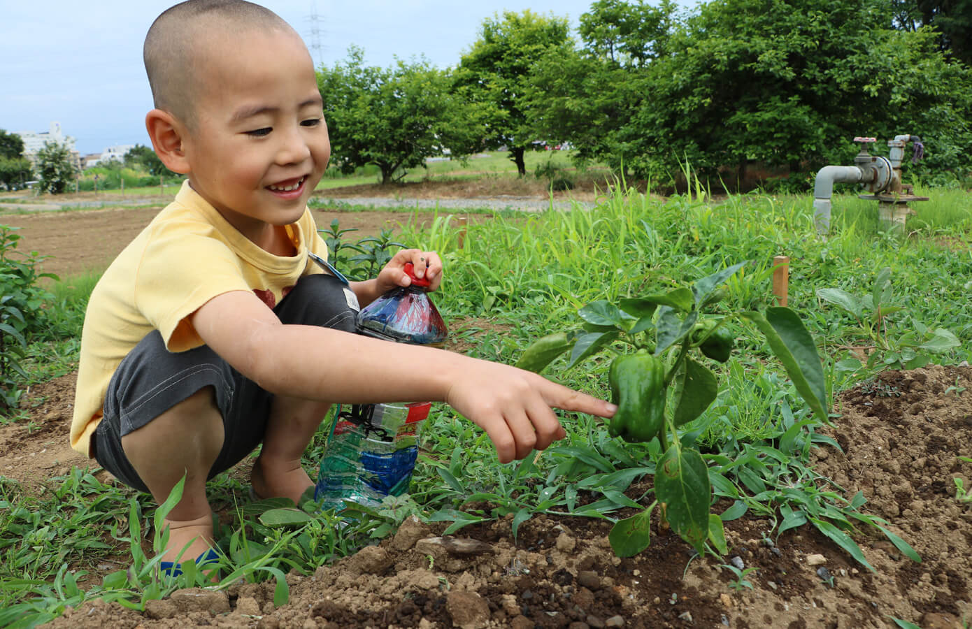 A. つくばどろんこ保育園ができる前、この土地は農地として利用されていたので、今でもびっくりするぐらい野菜や果物がぐんぐん育つんですよ。子どもたちも元気に遊べて、ぐんぐん育つ保育園にしていきたいですね。保育士にとってもそれは同じで、この環境から日々たくさんの刺激をもらっています。試行錯誤の毎日ですが、子どもたちがもっと魅力的な体験ができるように、知恵を絞り、愛情を注いでいきたいと思っています。そんなつくばどろんこ保育園を、ぜひ応援してください。