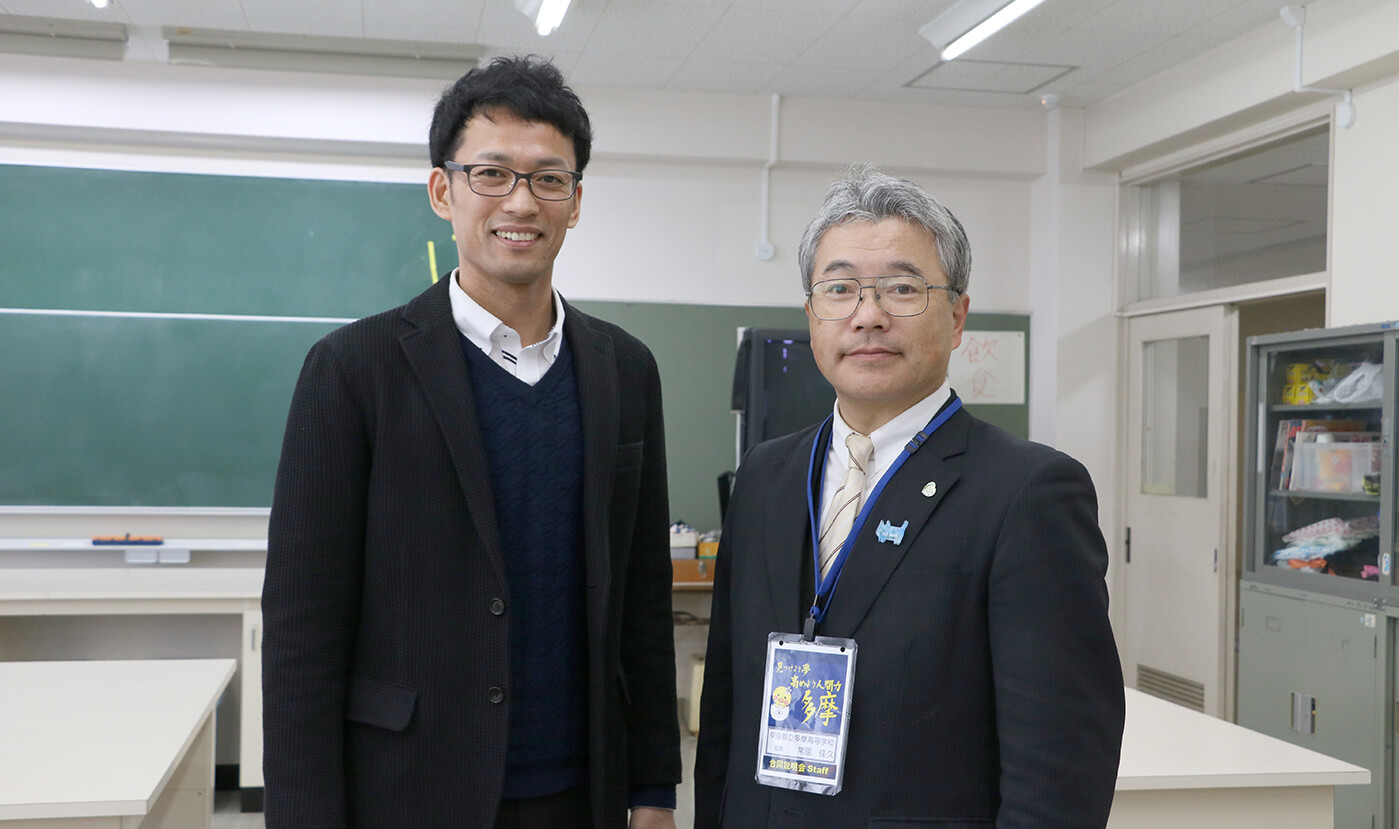 今回の「研究授業」は、多摩高校の常國 校長と、発達支援つむぎの運営担当 大久保との出会いがきっかけ。「青梅地域ならではの教育活動を進めたいと考えていました。」と語る常國校長は、「青梅林研」という集まりで「森のなかでの保育活動の意義」に熱弁をふるう大久保に大いに共感したそうです。にんげん力育成に本気で取り組む二人の想いが、今回の授業としてカタチになりました。