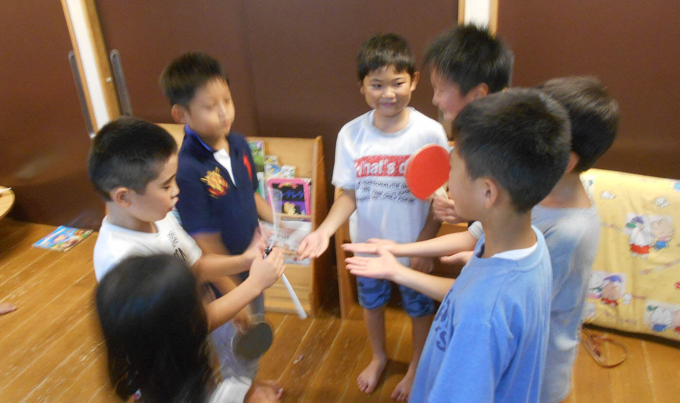 鶴見川の花火大会を保育園のテラスから観賞する予定でしたが、生憎のお天気で雷との競演に。でも、子どもたちはお構いなし!久しぶりに会う友達と一瞬で“あの頃”に戻ったようで、楽しそうに遊んでいました。