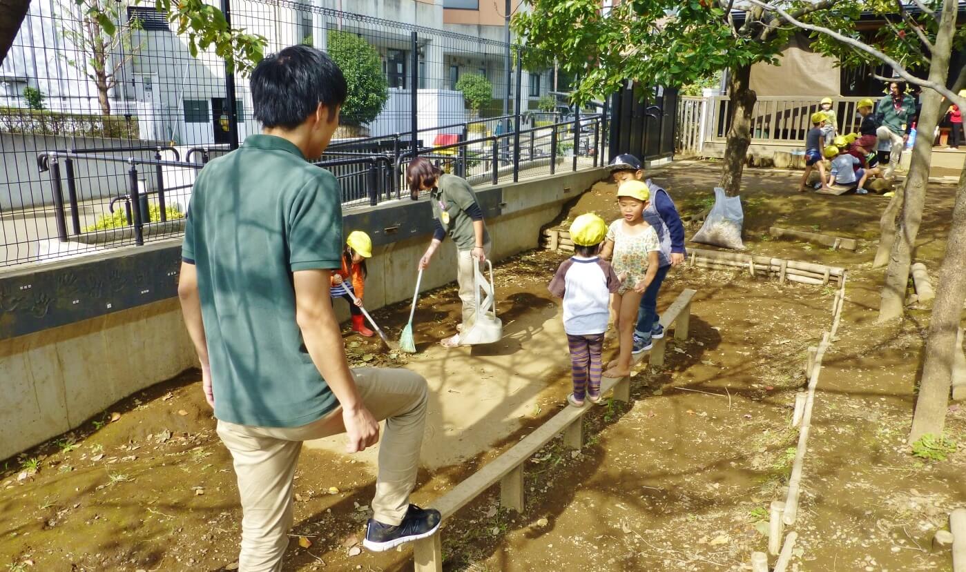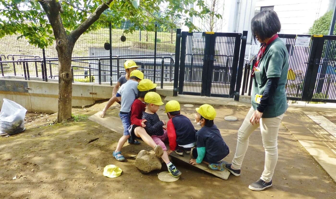 また、子どもたちが築山を元気に登ったり駆け下りたりする様子や、木に軽々と登っていく様子を見て、「私たちが子どもの頃にやっていた遊びと似ています。それがいかに大切なことなのか、この園を見てわかりました」と嬉しいお言葉もいただけました。