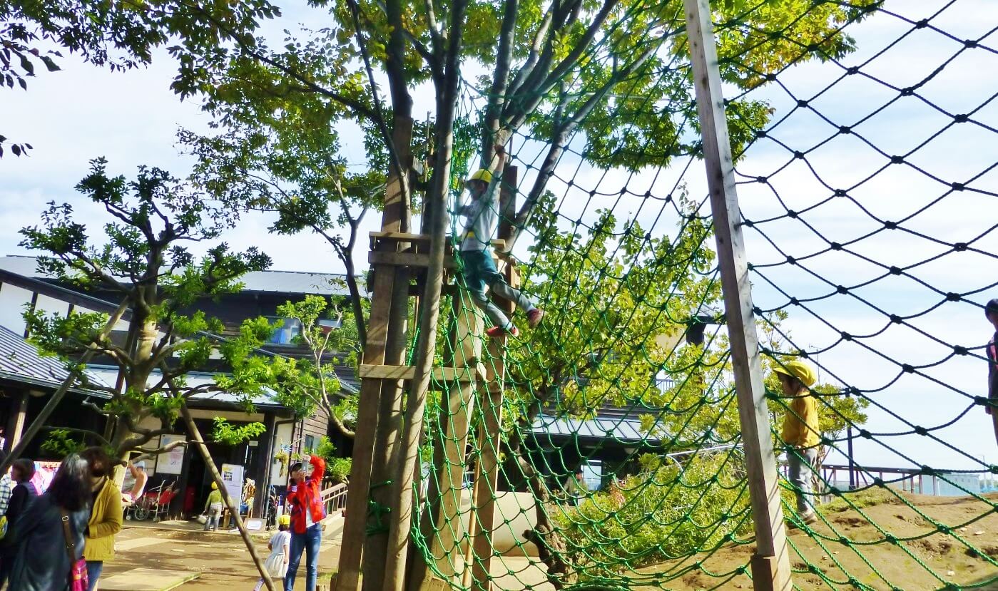 園庭での様子を見学した視察団のお1人が、「ちょうど先日ネットを買ったところです。横向きにかけてハンモックのように使おうかと思っていましたが、こうやって縦にかけるのは思いつきませんでした。自園でも実践してみたいです」とおっしゃっていました。
