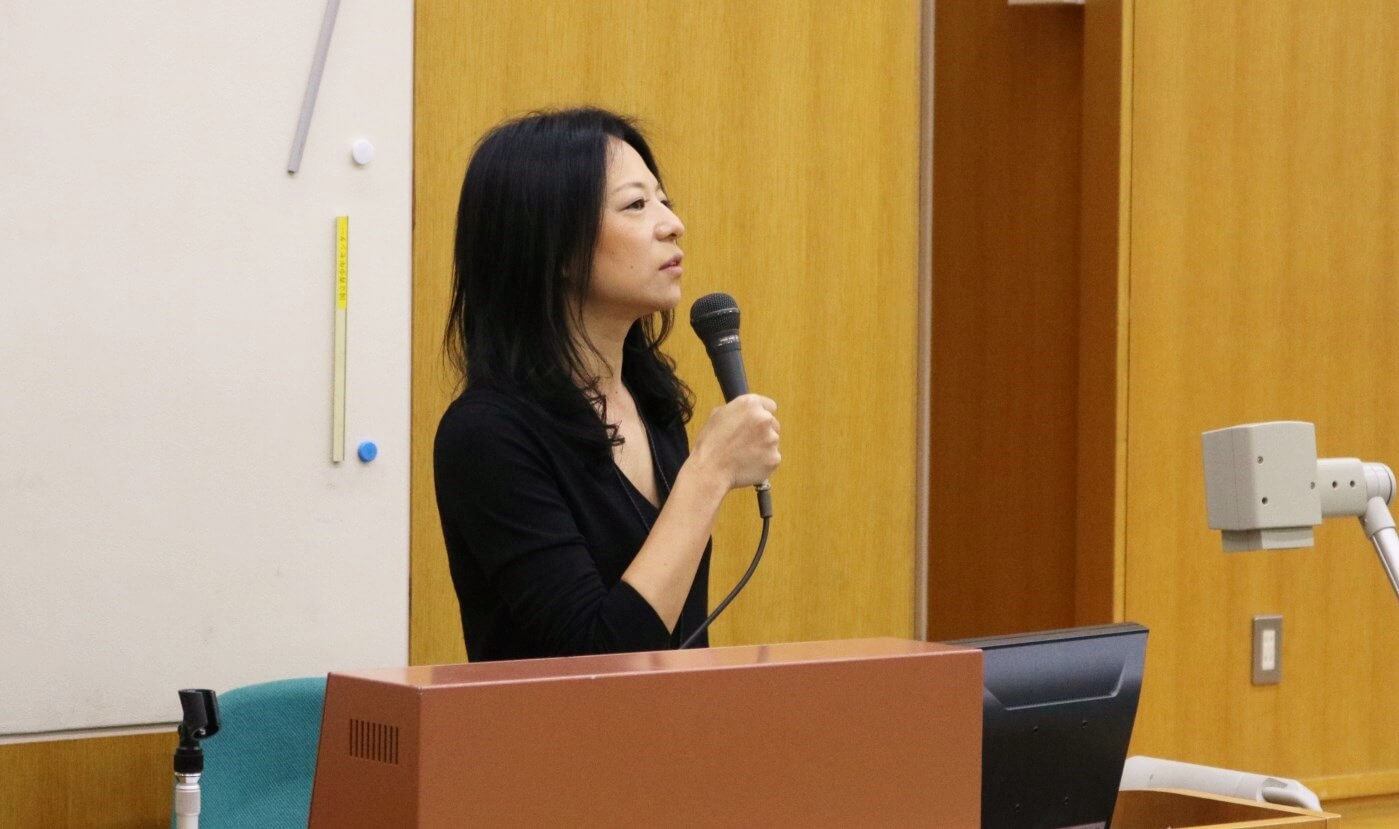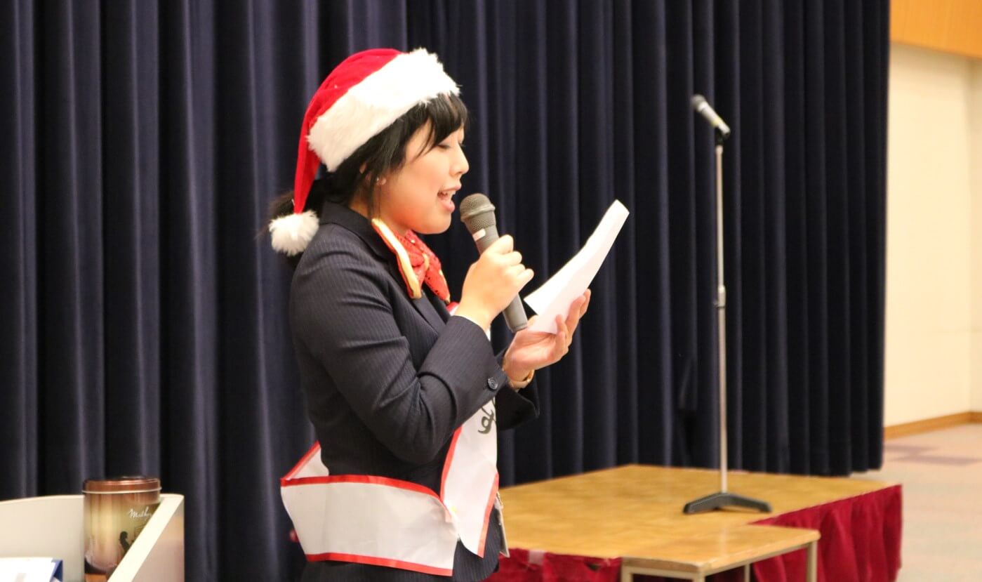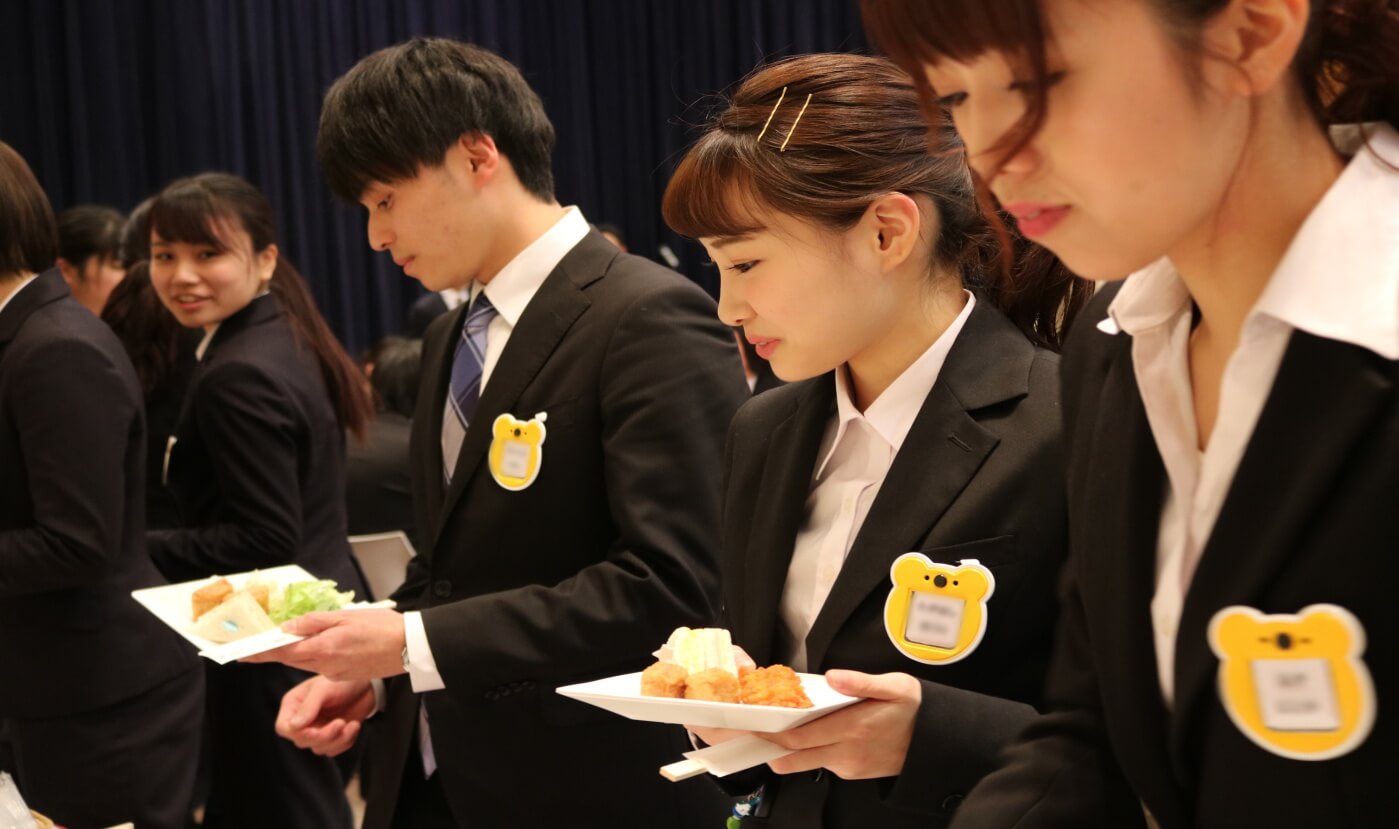この日は、理事長の安永愛香が登壇し、あいさつと内定通知書授与を行いました。午後からは昼食をとりながらの懇親会が開催されました。内定者の緊張をほぐすため、部長・マネージャー・現場のスタッフによるユニークな自己紹介や、どろんこ会にまつわるクイズなどを通し、お互いの名前と顔も覚え、打ち解けた様子で会場はアットホームな雰囲気に包まれました。