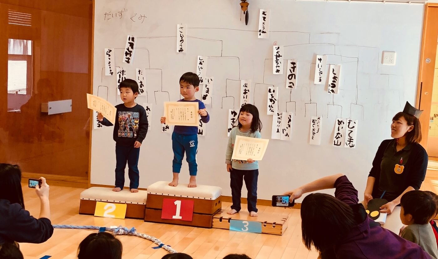 勝って誇らしげな子がいる一方、負けて拗ねちゃう子、悔しくて泣いてしまう子も……。小さい子どもとはいえ、やはり「負けると悔しい!」と思う気持ちがあるのです。勝つ子がいれば負ける子もいる、それが勝負の世界です。