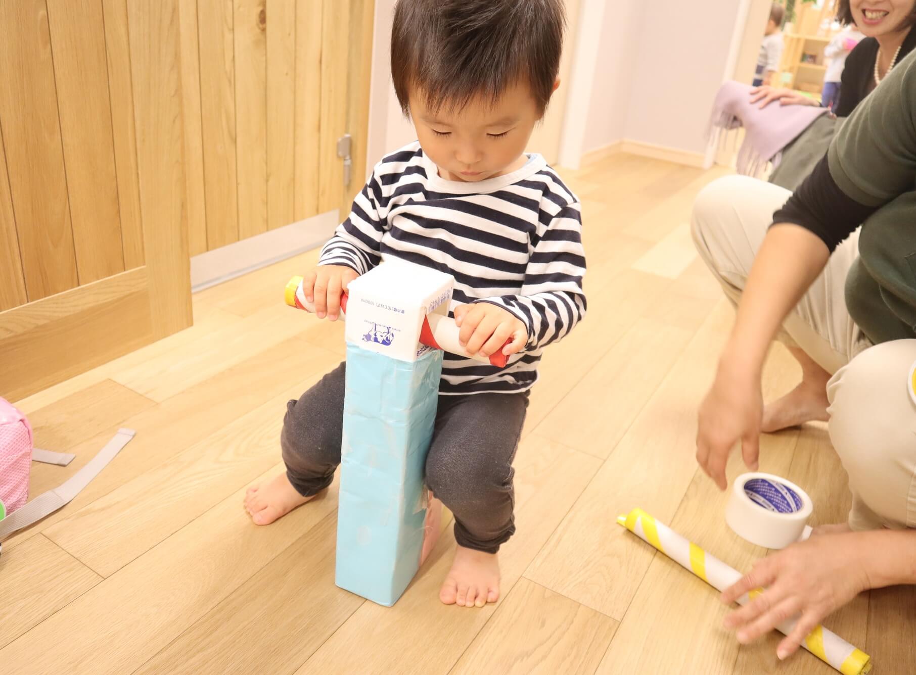 ここでは他のどろんこ会グループの園と同じように、担任を設けずに異年齢保育を行い、スタッフ全員で子どもたちを保育しています。そのため、園全体がひとつの家族のような、アットホームな雰囲気となっています。活動によっては子どもの年齢でグループ分けをすることもありますが、基本はお散歩も遊びも全員一緒です。1歳半の子が0歳の子のお世話をしている姿は、見ていてとても微笑ましいですね。一人っ子の園児にとっても、兄弟体験の場となっているんだと思います。