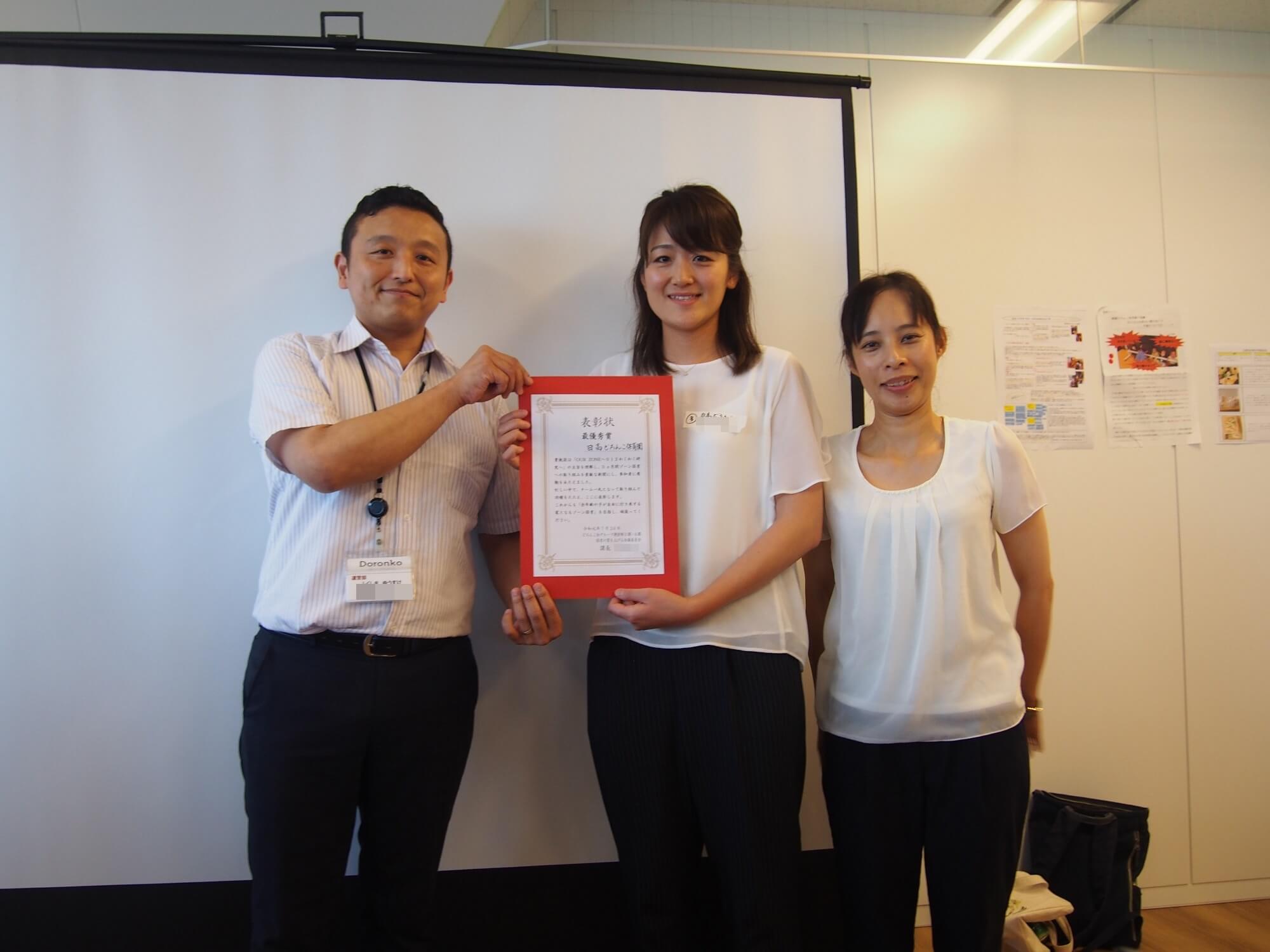 会議の終わりには職員みんなが投票した新聞の表彰式がありました。運営部課長の福島さんからは「確実に変化が見られ、考えて解決していく力がついてると感じる。3ヶ月間勉強したことは目に見えない形の財産、これを生かしてまた明日からスタートしてほしい」とコメントがありました。