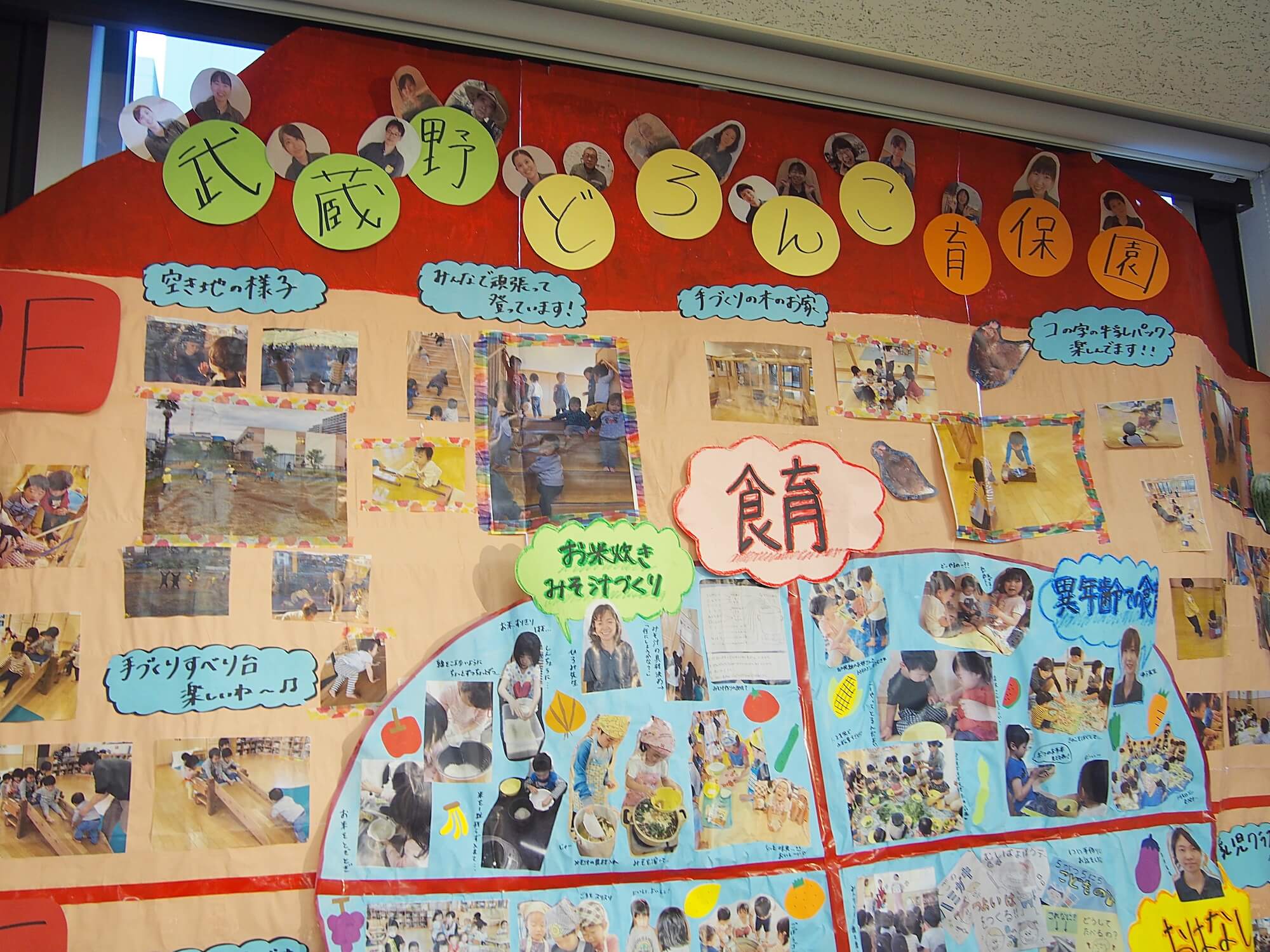 埼玉県八潮市にある埼玉回生病院の院内保育室、にこにこ保育室は、どろんこ会グループで一番規模が小さなワンルームの保育園。保育室の前にある老人施設のおじいちゃん、おばあちゃんとの触れ合いの様子や、散歩での一コマを紹介しました。「公園では遊具を使わずに芝滑りをしたり、隅に咲いているタンポポやツクシを見たり摘んだりして楽しんでいます」とのエピソードも。小さな場所でも工夫して「にんげん力」を育む取り組みをしています。