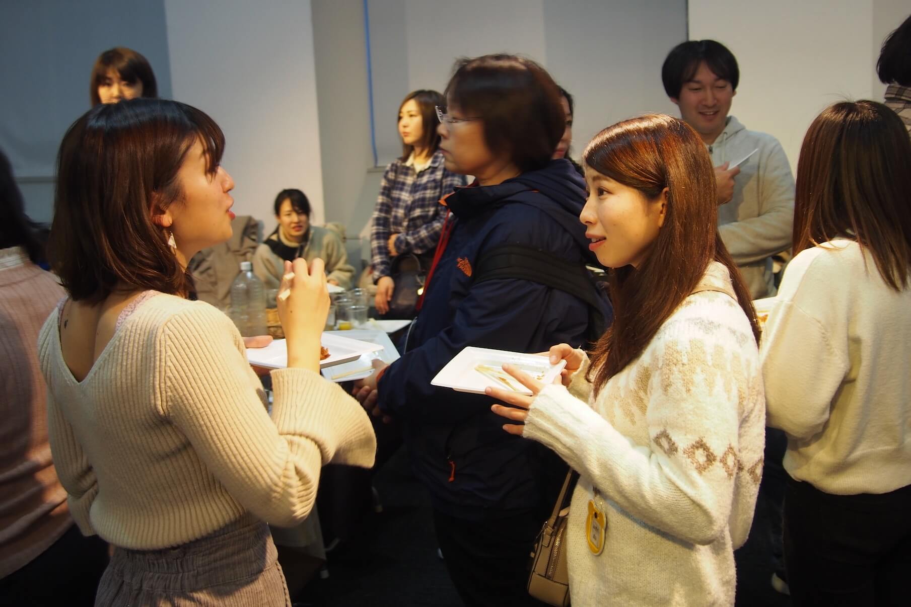 発表終了後には懇親会の場が設けられ、緊張のとけた職員たちが食事を囲みながら笑顔で交流を楽しみました。今回は茨城、埼玉、東京、神奈川エリアの33施設が集まったこともあり、自分の所属するエリアを越えた出会いがありました。他の園・職種の職員とのつながりを作ることで、問題の解決や困った時に助け合えるタテ・ヨコ・ナナメの柔軟な関係を作る機会となったようです。