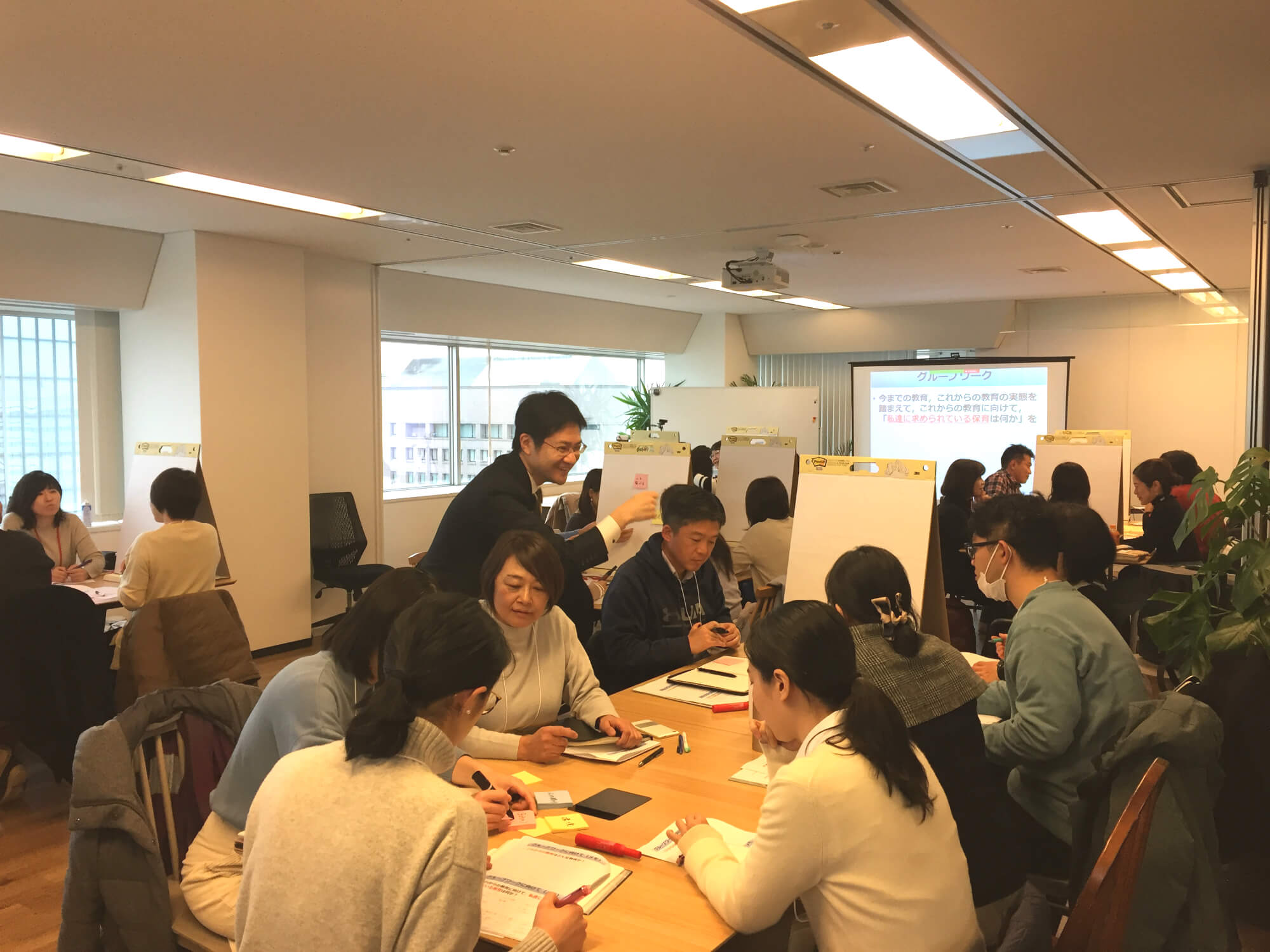 1月26日(日)、保育・幼児教育、発達支援関係者、保育士を目指す方など向けの子育てスキル講座「科学教育・情報教育の研究者にきく!AI時代を生きる子どもたちに生涯必要な『学ぶ力』をはぐくむ保育とは?」を開催しました。どろんこ会グループ職員は本社会場のみならず、北は仙台、南は沖縄まで、9拠点でサテライト会場を設置して参加。今回の講座のテーマでもあったICT(情報通信技術)を活用した学び合いを、Web会議ツールを使って実践しました。