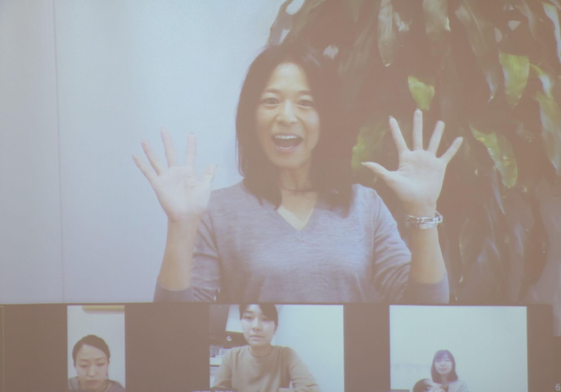 まずは復帰時に戸惑わないよう、2020年と2021年の新規開園情報や、さまざまな手続きがWeb化していることなど、産育休中に進んだ出来事をアップデートしました。その後、安永理事長から「私も今思い返すと、子育てと仕事を両立していた時期が一番大変でした。でも、自身が復職して両立するということを経験することによって、働く保護者に本当の意味で共感して寄り添っていけると思っています。復帰を心から首を長くしてお待ちしています!」と、VTRメッセージでビッグスマイルとともにエールを贈りました。