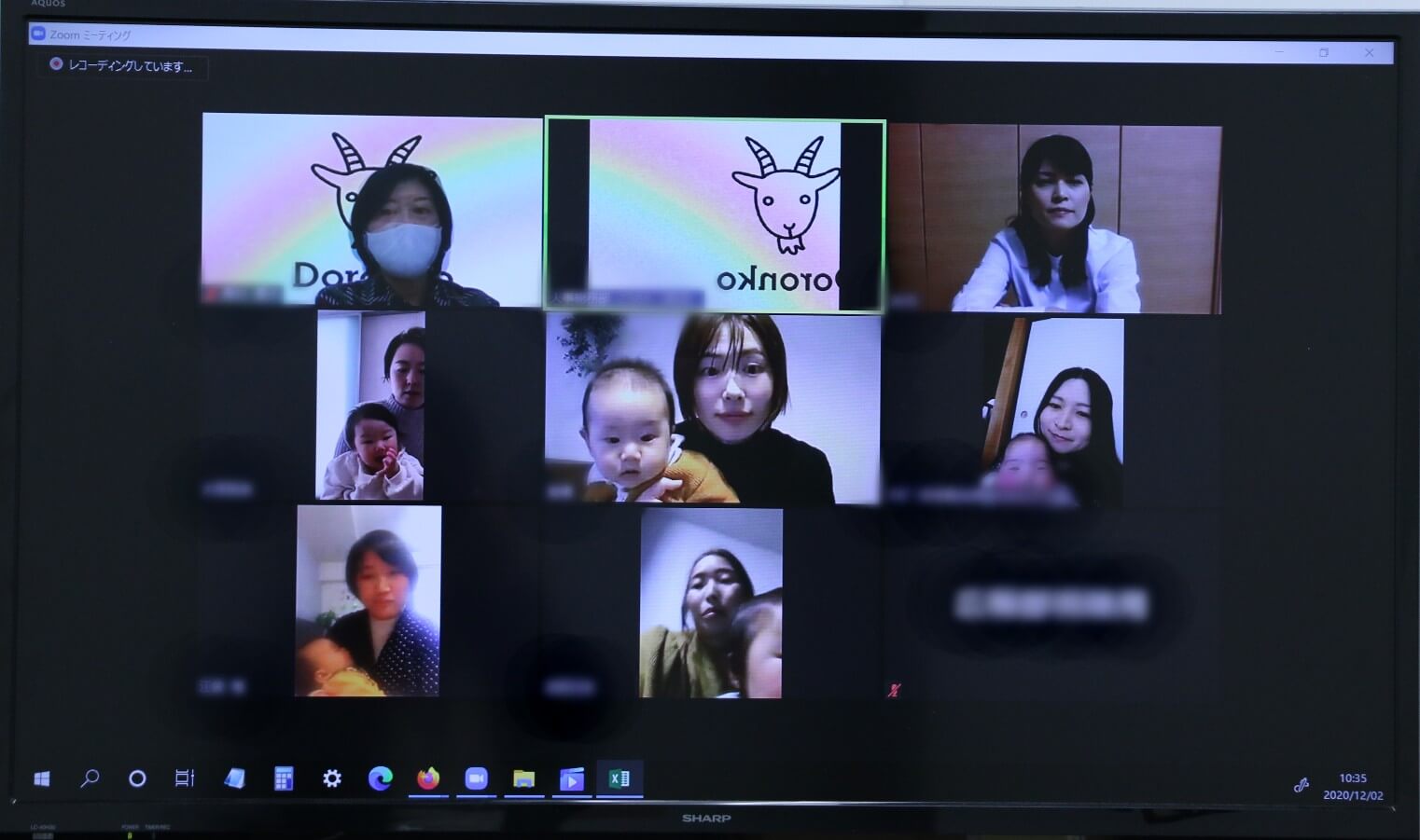 どろんこ会グループでは2020年、94人のスタッフが産前産後・育児休暇を取得しました。誰もが経験したことのない、新型コロナウイルスの脅威にさらされながらの妊娠、育児は不安だらけだったのではないでしょうか。そんな中、産育休中のスタッフ同士がつながることで不安を少しでも和らげたいと考え、オンライン懇談会を12月2日と4日の2回に分けて行いました。