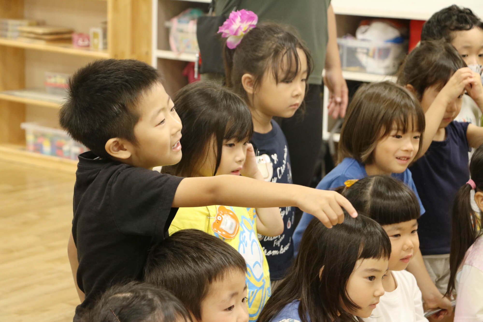 重たいから沈む、丸いから浮く、それならスイカは入れたらどうなるのか。子どもたちの疑問や考察が次々と飛び交いました。終わった後も「帰ったらお姉ちゃんに教えてあげよう」と楽しそうな様子でした。