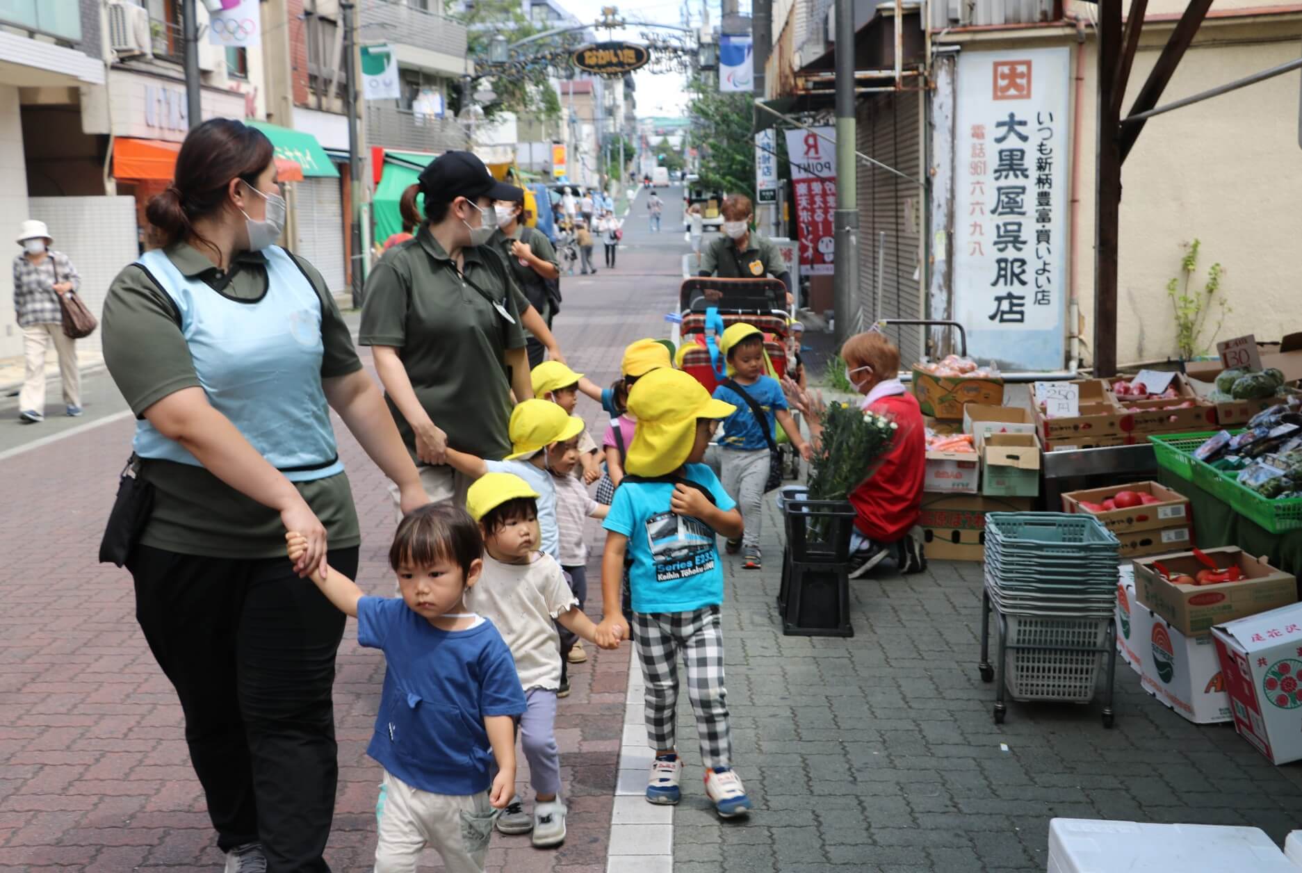また、商店街を歩くと、地域の方が手を振ってくださったり、声をかけてくださったりと、温かく見守られていることがよく分かりました。とある雨の日に散歩をしていると、何人もの方が傘を貸してくださり、中には車からわざわざ降りて届けてくれる方もいたのだとか。駅に近く、商店街の中にある保育園だからこそ地域に根づいた活動ができるのが中板橋ルームの魅力のひとつです。