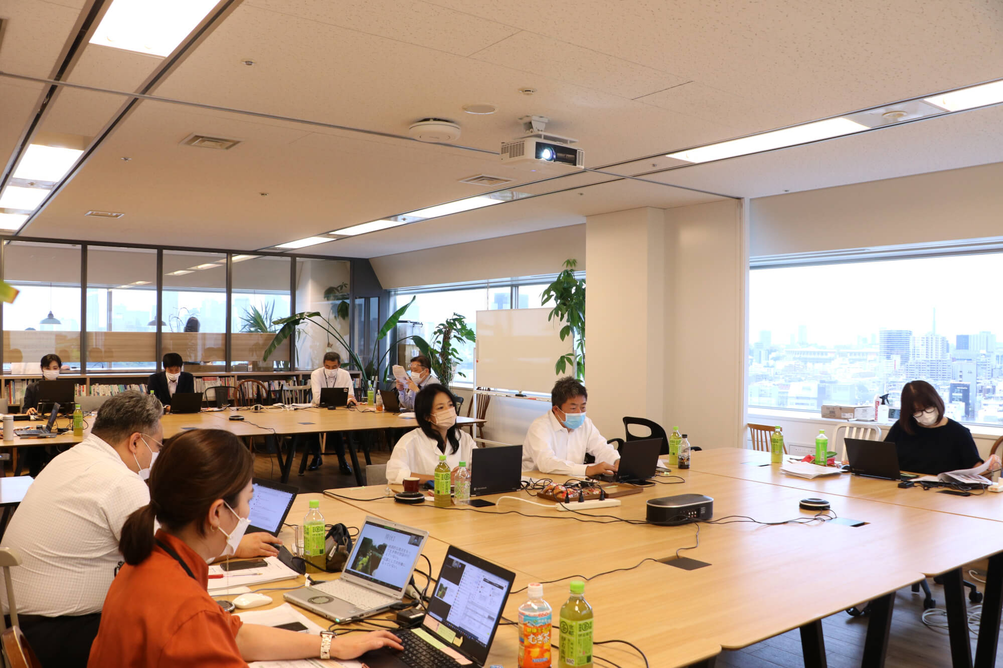 審査会は昨年度と同様にオンラインで行われました。安永理事長、高堀代表をはじめ、関係部門の役職者、各エリアのスーパーバイザーを兼任する施設長などが審査員を務めます。