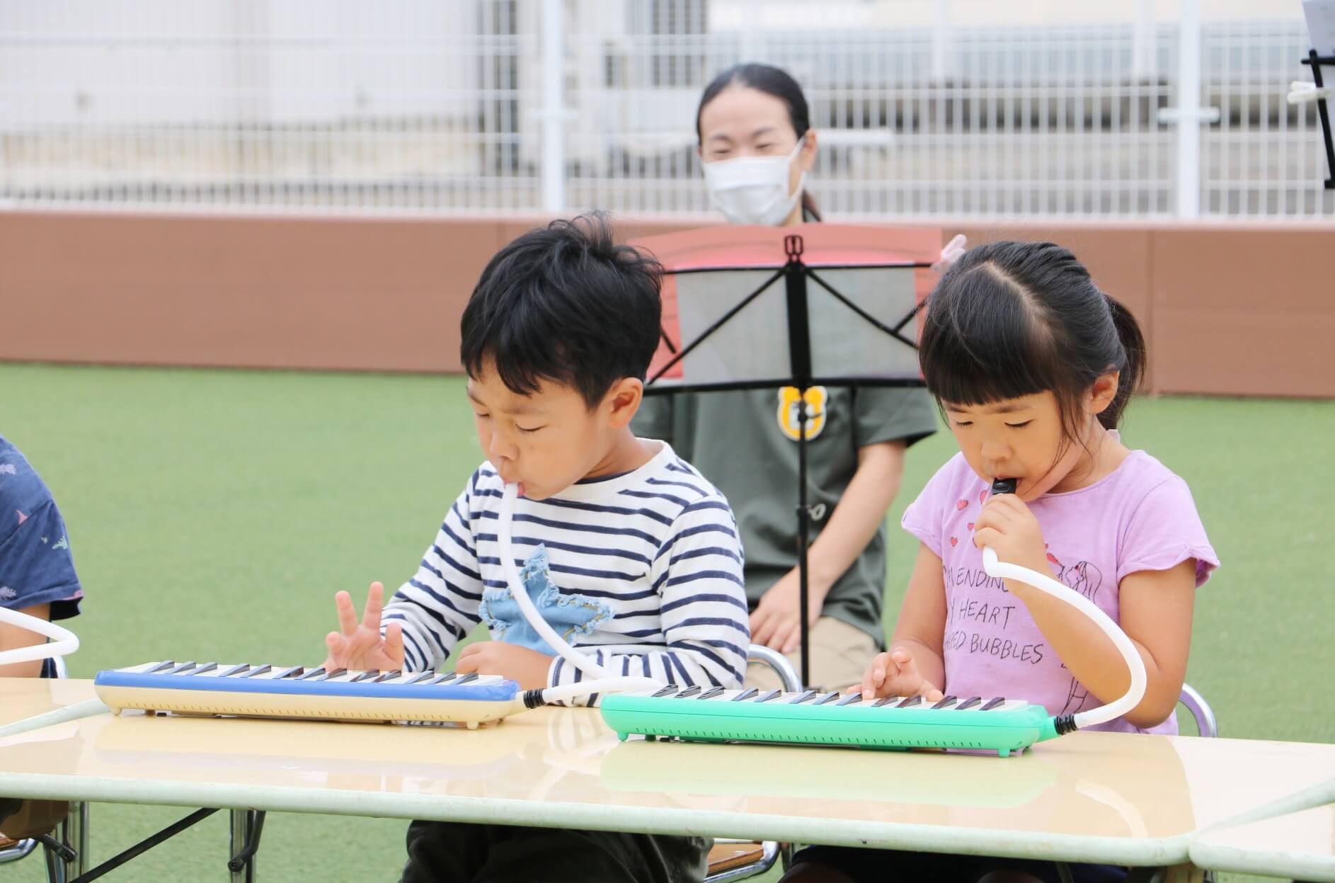 こめ組の子どもたちはピアニカで『きらきら星』を披露しました。「約4カ月間の練習ではピアノを弾ける子が弾けない子に教えてあげる姿も見られました。同じきらきら星でも、伴奏によって聞こえ方ががらりと変わります。子どもたちも素敵なバックミュージックに合わせることができたという達成感や高揚感があったからこそ、熱心な自主練習にもつながったのだと思います」と千葉さんは振り返ります。