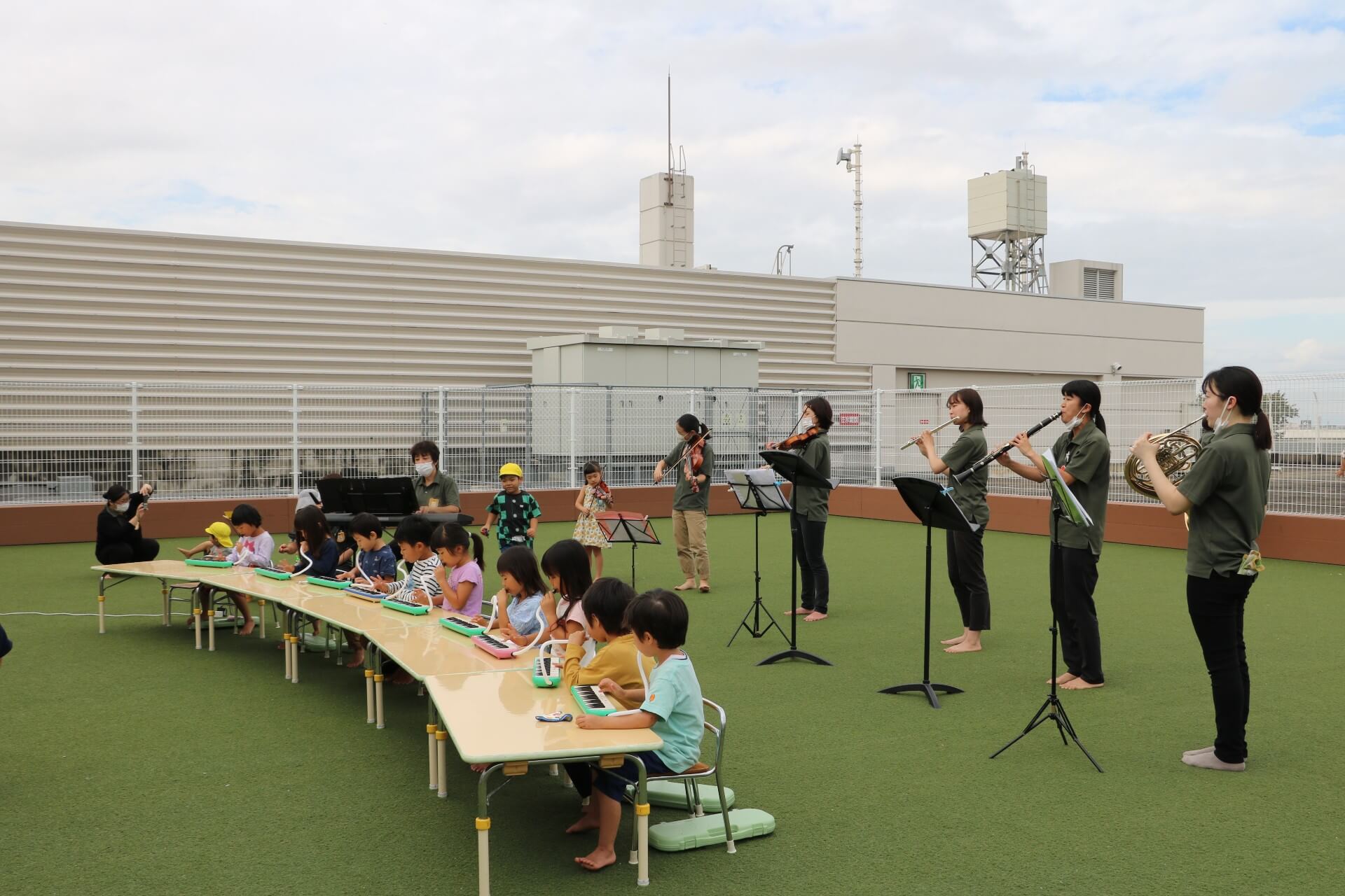 メリー★ポピンズ 桶川ルーム(埼玉県桶川市。以下、桶川ルーム)で素敵な音楽会が開かれました。桶川ルームがあるのは、JR高崎線桶川駅直結の商業施設「おけがわマイン(パトリア桶川)」の4階です。どろんこ会グループの中で、駅近の保育園としては唯一、発達支援つむぎを併設しています。