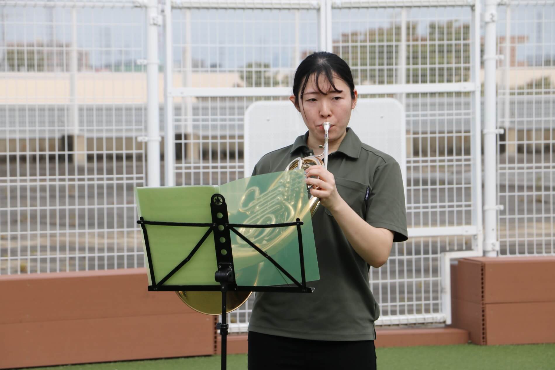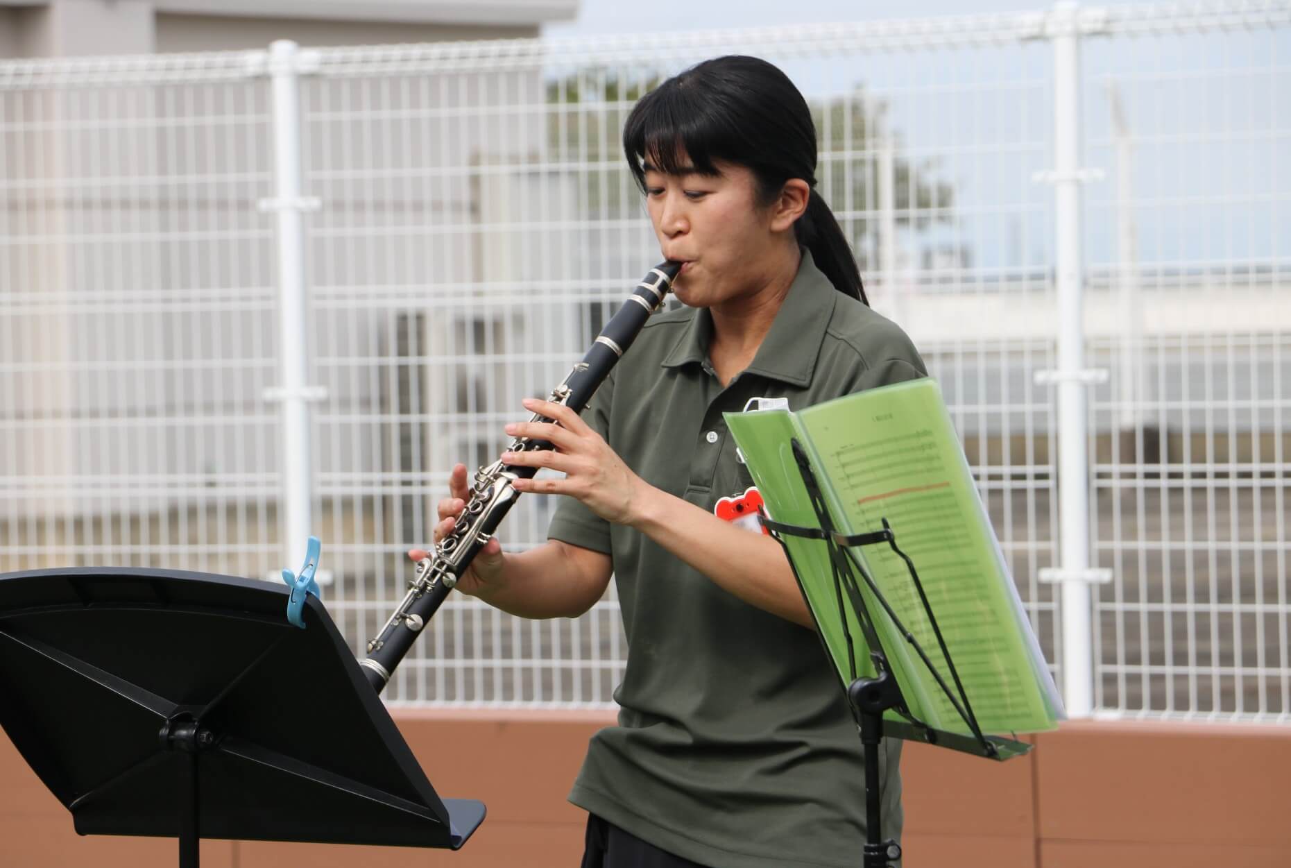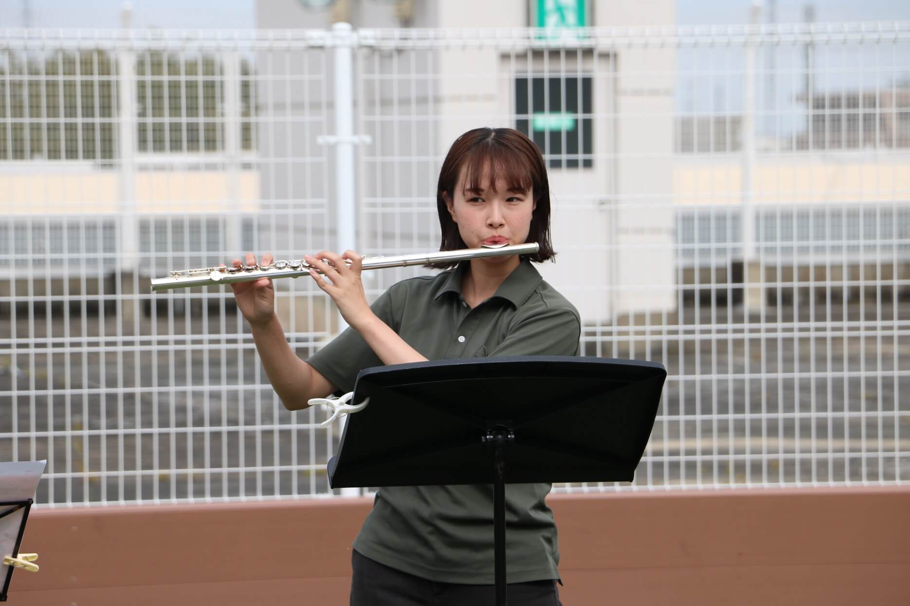 バイオリンを弾くのは発達支援つむぎ 桶川ルームで社会福祉士として働く丸谷さん、同じく言語聴覚士として活躍する関根さんがビオラを担当しました。そして、ホルンは栄養士として日々子どもたちにおいしい給食を作っている時光さん、そして、保育士の國谷さんはフルートを演奏しました。