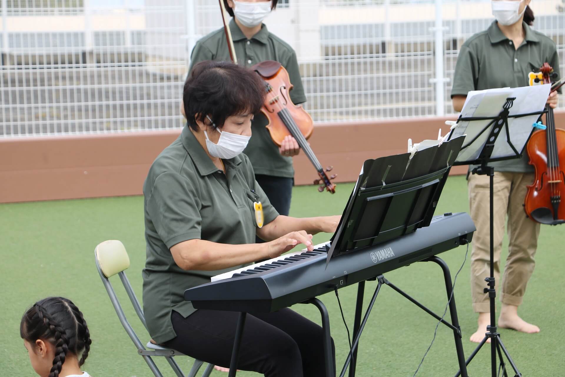 「偶然にもピアノだけでなく、ホルン、フルート、ビオラ、バイオリン、クラリネットを演奏できるスタッフがそろっていたのです。音楽は言葉も関係なく、誰でも親しめるもの。子どもたちにCDデッキから流れる音ではなく、生の音を聴かせたい、本物の体験をできる環境にあるのなら、それを生かさない手はないと思いました」と、楽しそうに語ります。
