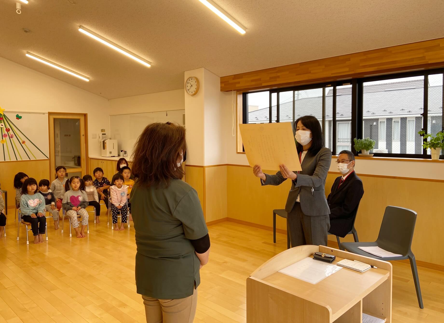 八山田どろんこ保育園「緑の環境プラン大賞 ポケット・ガーデン部門 国土交通大臣賞」賞状贈呈