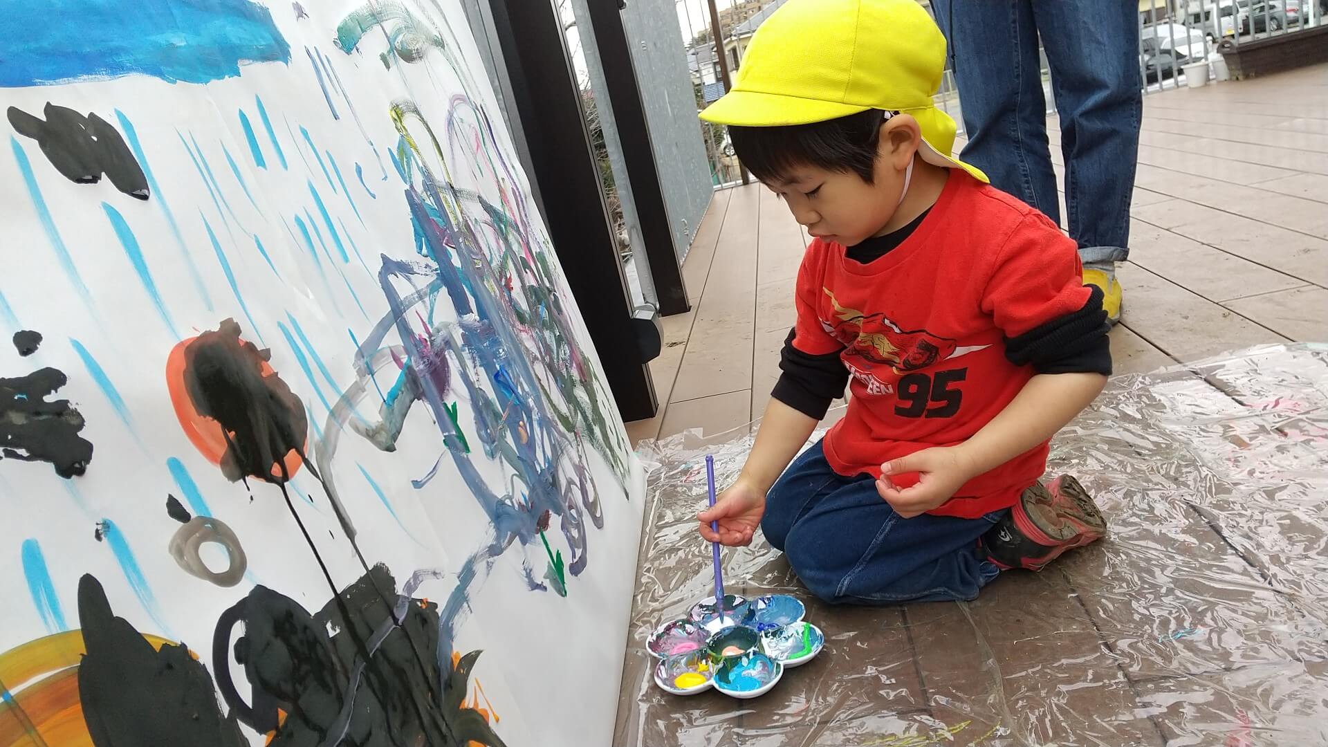 日ごろから絵を描くことが好きな子がいつものように集中して描いている一方で、普段は絵に興味を示さない子が、いつもと違う大きなキャンバスに惹かれて夢中になったり。また、泥遊びが大好きな子はほかの活動には目もくれず園庭でひたすら泥遊びに熱中していました。「そのあまりにも楽しそうな様子をご覧になった保護者の方から『いつもこんなに楽しそうに遊んでいるですね』という言葉を聞くことができ、日ごろの姿をお見せすることができたかなと、うれしくなりました」と、丸田さんも笑顔で話しました。