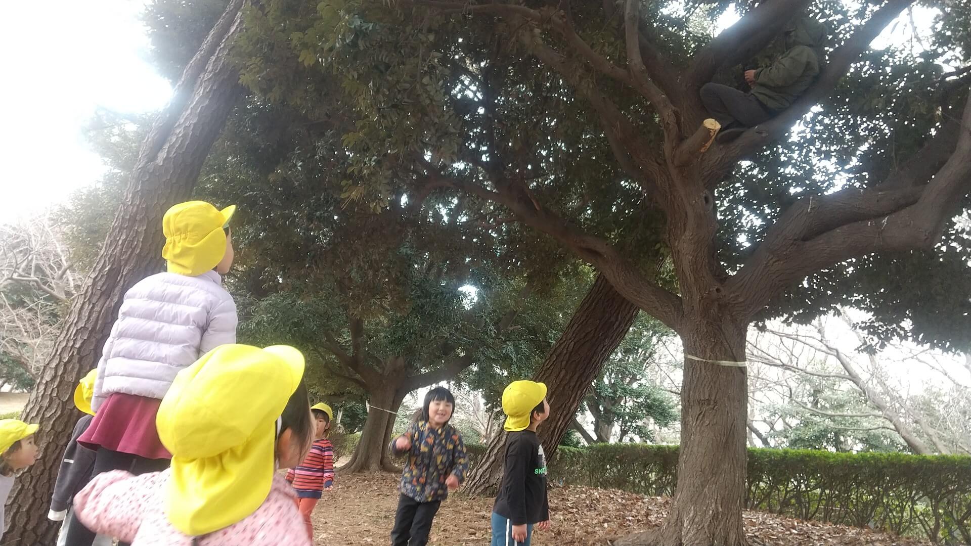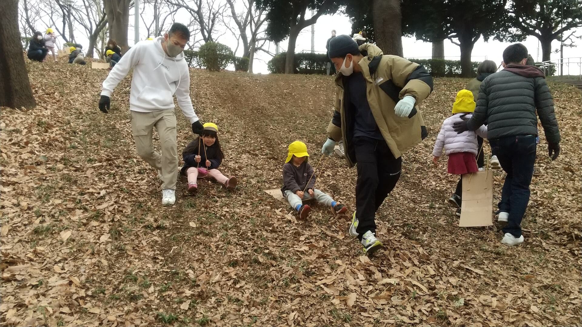 そして園から最も遠い神の木公園では長距離散歩、到着後のかくれんぼ、段ボール滑り、宝探しゲームと盛りだくさんの内容でした。