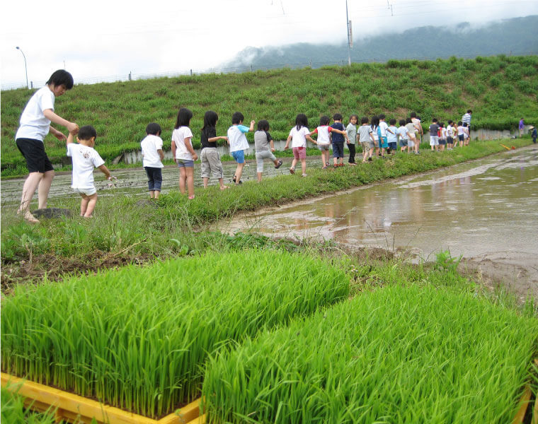 子どもたちの血となり肉となる食材、米、野菜、卵、魚をグループ内で生産、加工、調理して子どもたちと一緒に食べるという姿を目指しています。