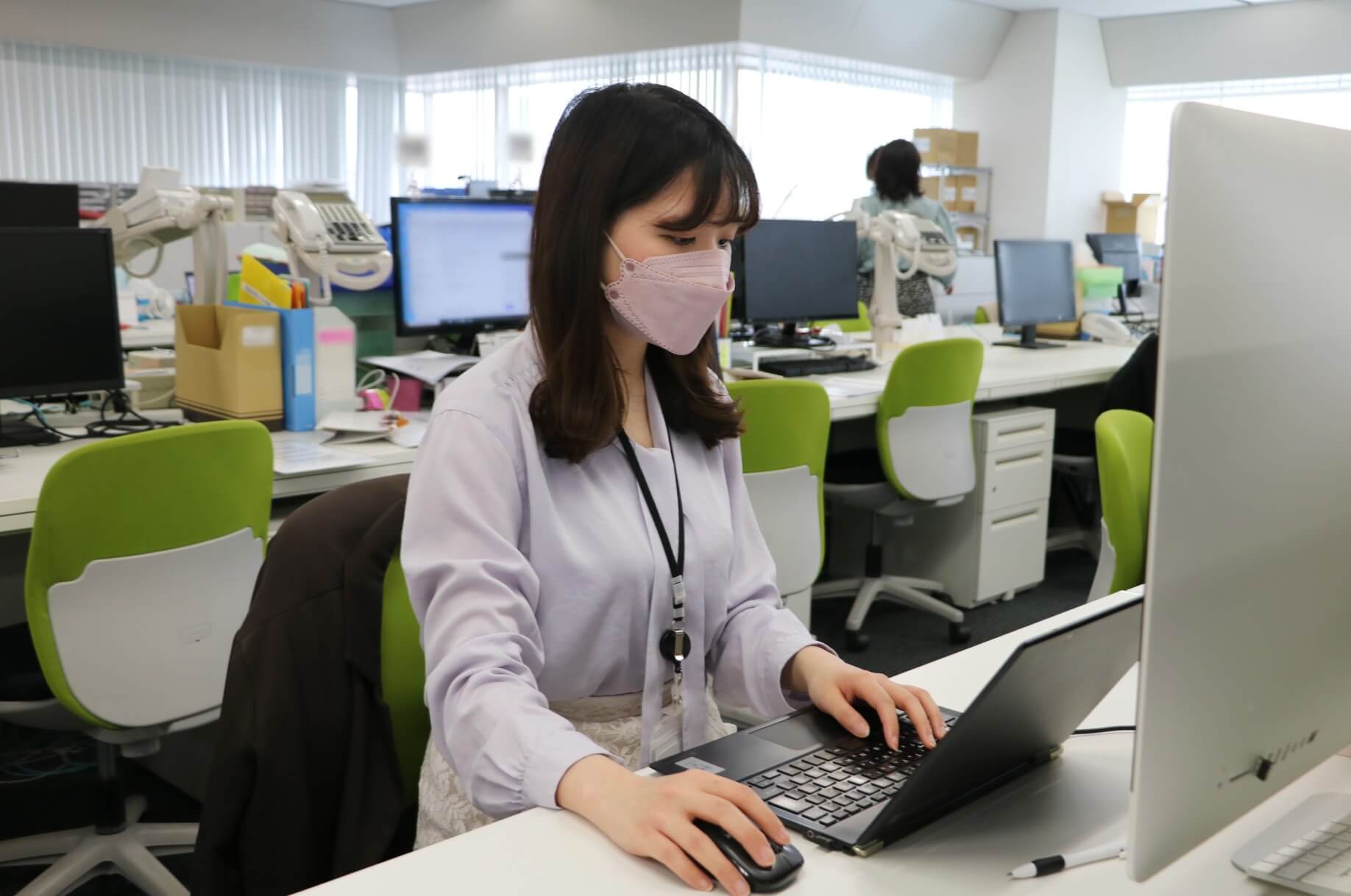 曾さんはどろんこ会グループに入社後、3カ月間保育の現場で研修を受け、その後人事総務部に配属され、当時は中国からのご見学者様のアテンドがメイン業務でした。現在は広報部に所属し、外国籍の保護者の方のサポートや文書の翻訳をはじめ、社内広報を中心に担当しています。
