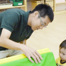 ほぼ全クラスで子どものそばに寄り添って見守っていたりと、縦横無尽に活躍していた新井さん。当日の子どもたちの様子を見て「特に1歳児は普段食事の際に泣いてしまって集中力がない子どもも興味をもって、ご飯を触りながら、柔らかいな、食べられるのかな、と考えている様子が見られ、成長を感じました」と目を細めました。