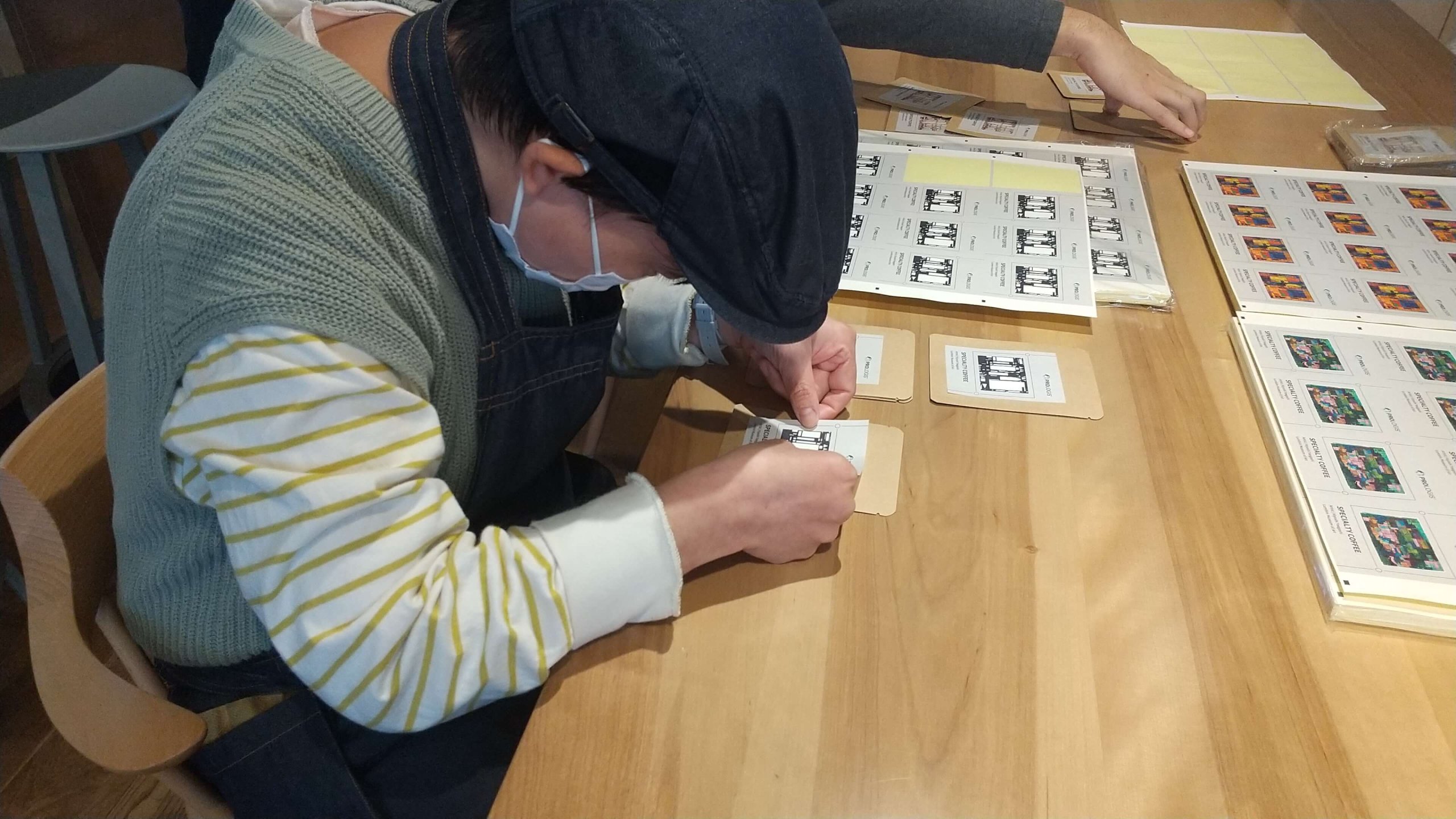2023年11月には実際の仕事の様子をご覧になりたいとのことで、株式会社ヘラルボニーと、今回ドリップバッグをギフトとしてご利用いただくプロロジスの方が就労支援つむぎ 武蔵野ルームにお越しくださいました。