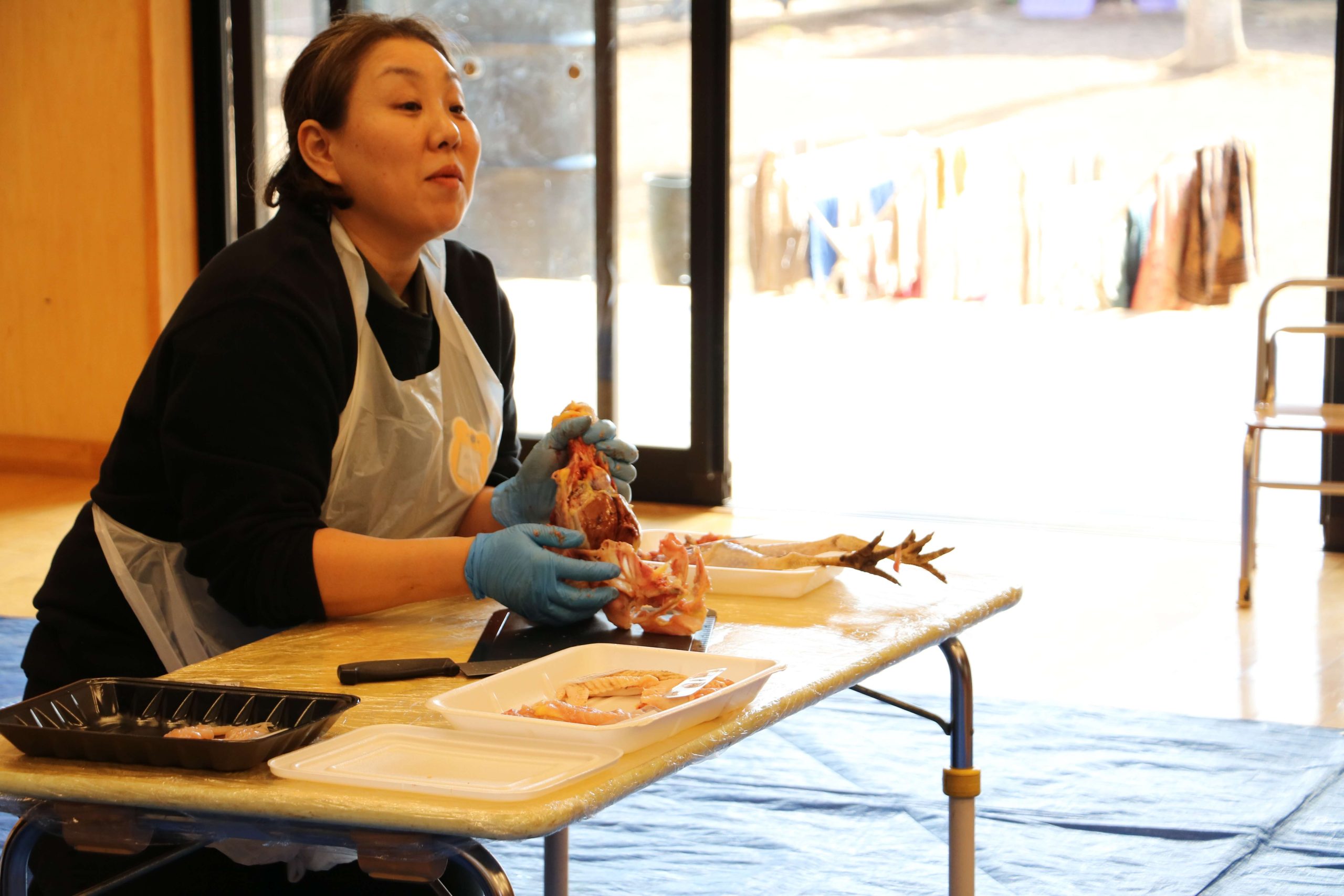もも肉とむね肉を試食し、食感の違いを感じながら「おいしいね」と味わう子どもたちの様子を見た小川さんは「さばいたことは忘れてしまうくらい、食べたいという意欲が勝っていましたね。まさに食べることは生きることと感じました」と、その時の勢いを語りました。