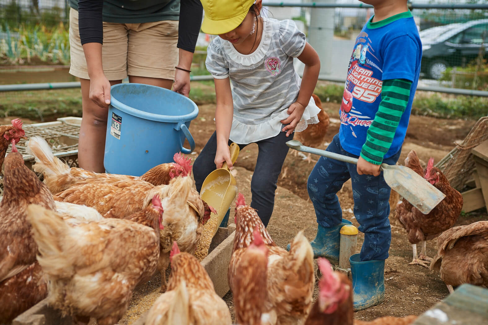 中里どろんこ保育園では鶏とヤギを飼育していますが、ペットとしてかわいがることが目的ではありません。生き物を飼うことにより生死の瞬間に立ち会う体験機会を設けるためであり、生き物を世話することで自分の身の回りのことを自分でするということを教えるためでもあります。