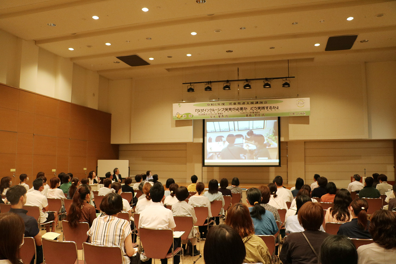 当日は、古河市内で児童発達支援や保育に従事されている方を中心に、インクルーシブ保育に興味のある約100名の方々にご参加いただきました。