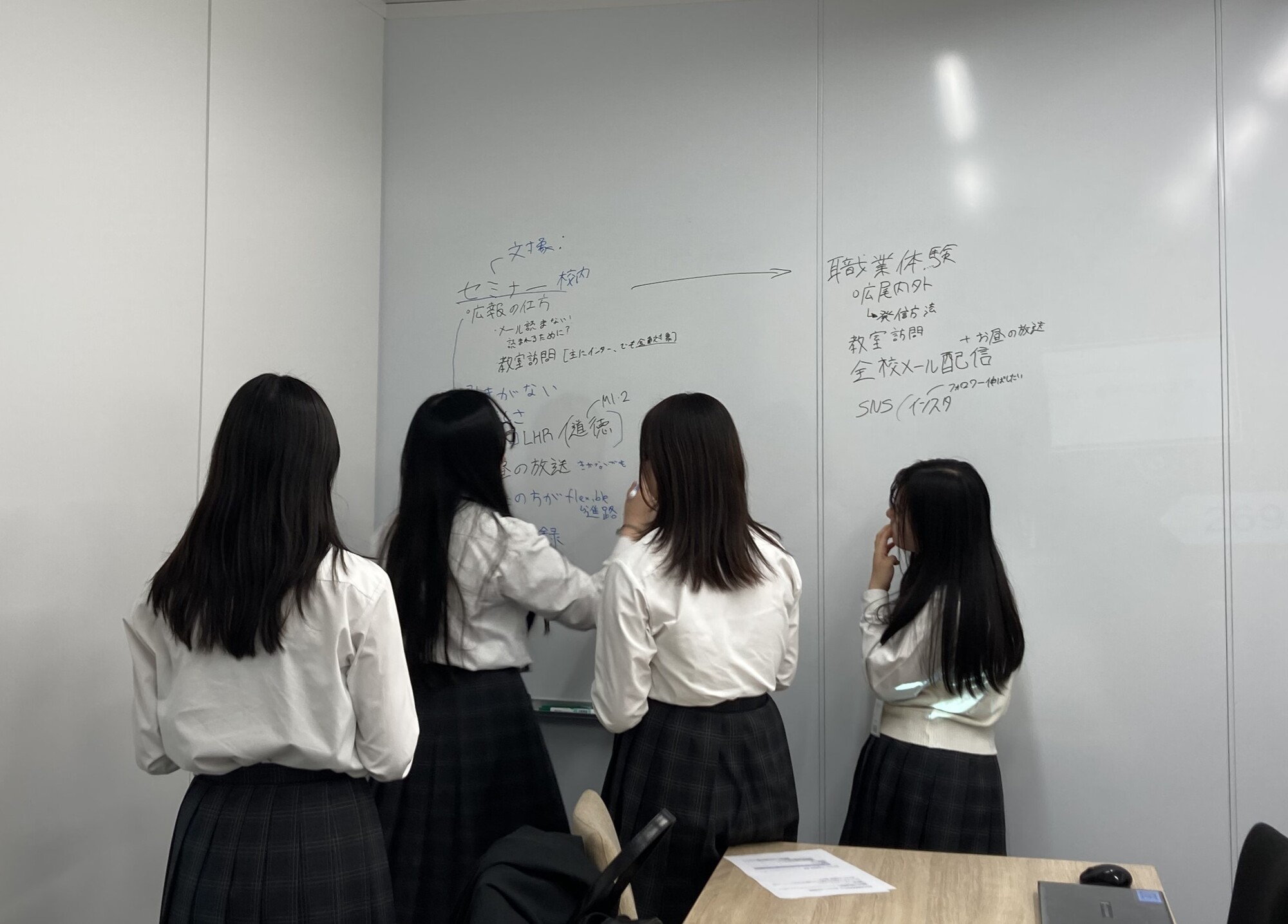 新2年生となった4名が、2025年度のインターンとして4月より本格的に取り組みを開始しています。昨年度に先輩が実施した全国の高校生を対象とした意識調査の結果を参考に、保育士という仕事の魅力をより多くの人に伝えるためのアイデアを出し合う企画会議を行いました。インターン生による今後の活動内容は、「どろんこ会×広尾学園高校生企画」の公式Instagramを通じてお届けしてまいります。