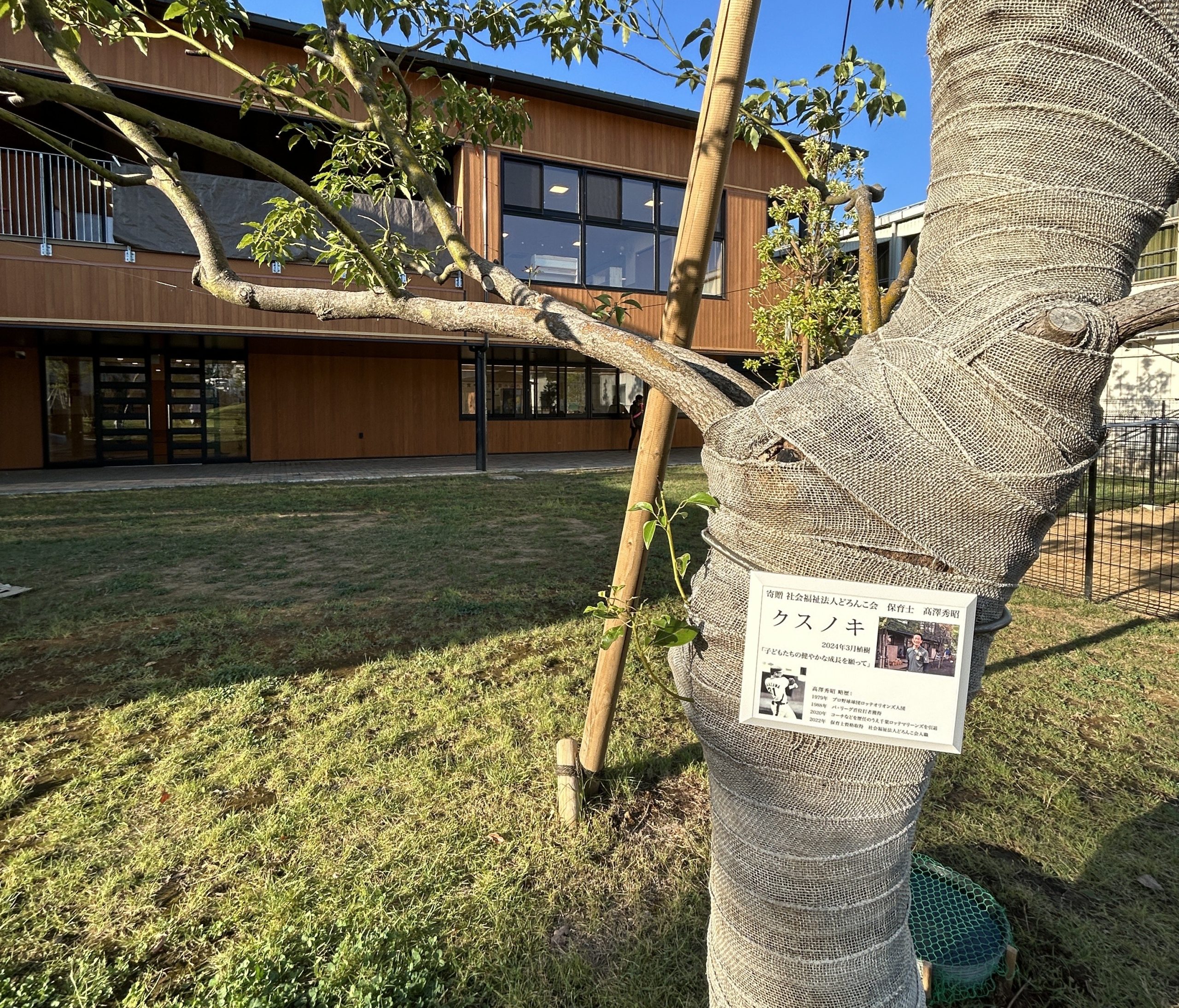 2024年、東京都初の認可保育園と児童発達支援センターの完全併設施設が開園することを記念し、髙澤さんから樹木の寄付をいただいたという背景がありました。