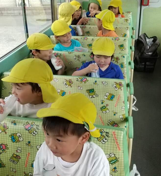 そしてお風呂上がりにはキンキンに冷えた牛乳を友だちと一緒に飲みます。「めっちゃ美味しい!」「はーしみるー」と美味しさを共有しながら楽しんで飲んでいました。お風呂上がりの牛乳の美味しさを知り、「また銭湯行こう~!」と話しかける子ども達もいました。行き帰りのバスでも「お願いします」「ありがとうごさいました」と挨拶をしていました。