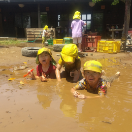 掃除の後は園庭で過ごしました。心なしか子どもたちの団結力が増しているようでした。普段から使っている場所や物をきれいにすることで、子どもたちも清々しい気持ちになったのかもしれませんね。