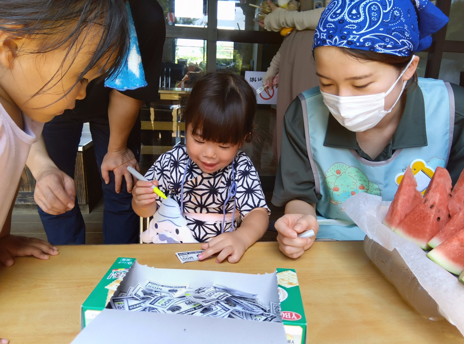 子どもたちは臆することなく「いらっしゃいませ!」「やきそばどうですか?」「かき氷あるよ!」と呼び掛けている姿が見られ、その場にいた全員が可愛らしい呼び込みにほっこりとした表情を浮かべていました。