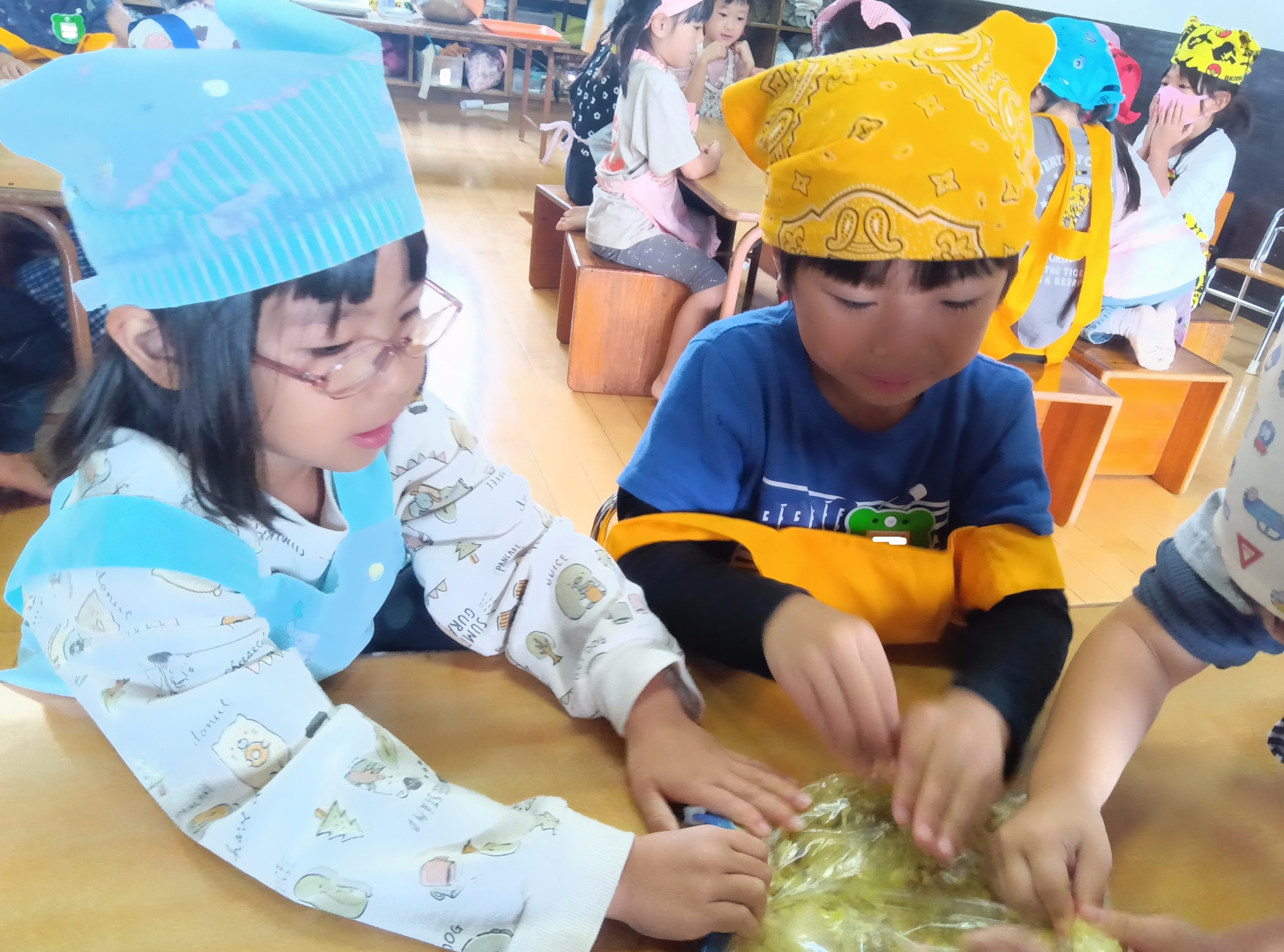 朝霞どろんこ保育園「秋の食材を使ったクッキング」