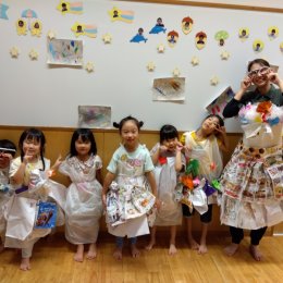 普段は各クラスで行うことの多い表現活動ですが、自分で好きな場所・やりたいことを選べたり、異年齢で混ざって色々な友だちと一緒に活動を行ったりすることで、普段は製作活動が苦手な子もやってみようという意欲につながり、多くの素敵な作品が生まれました。
