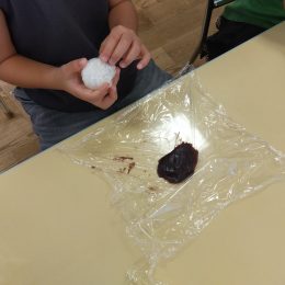 ネイチャービンゴは、公園内に沢山落ちている自然物を集めてビンゴカードに貼り付けてビンゴを作ります。とても多くの自然に恵まれた公園なので、子どもたちがそれぞれ集めてくる物も様々で、個性豊かなビンゴカードが出来上がっていました。