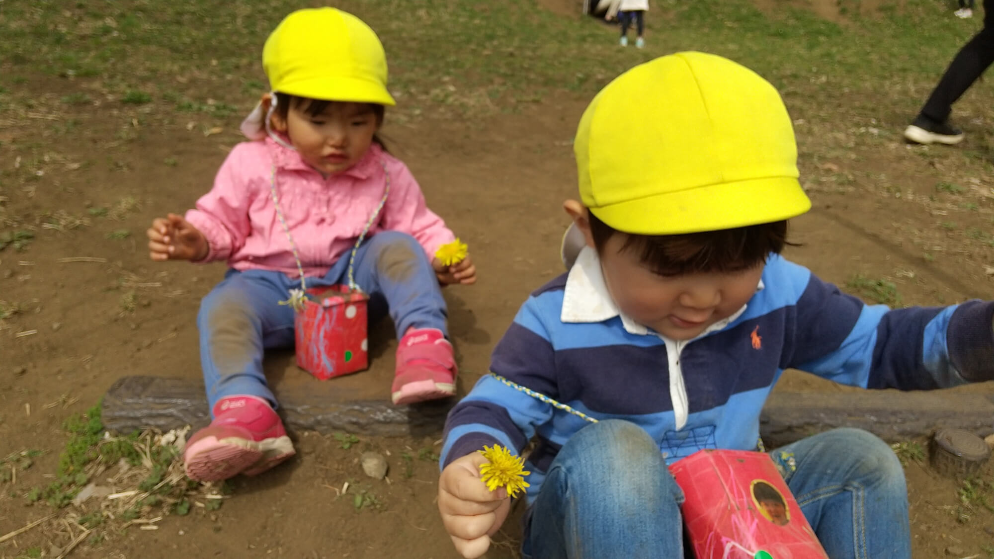 別の公園ではタンポポ探しに夢中の子どもたち。見つけたタンポポを大事そうに、手に握ったまま遊んでいました。