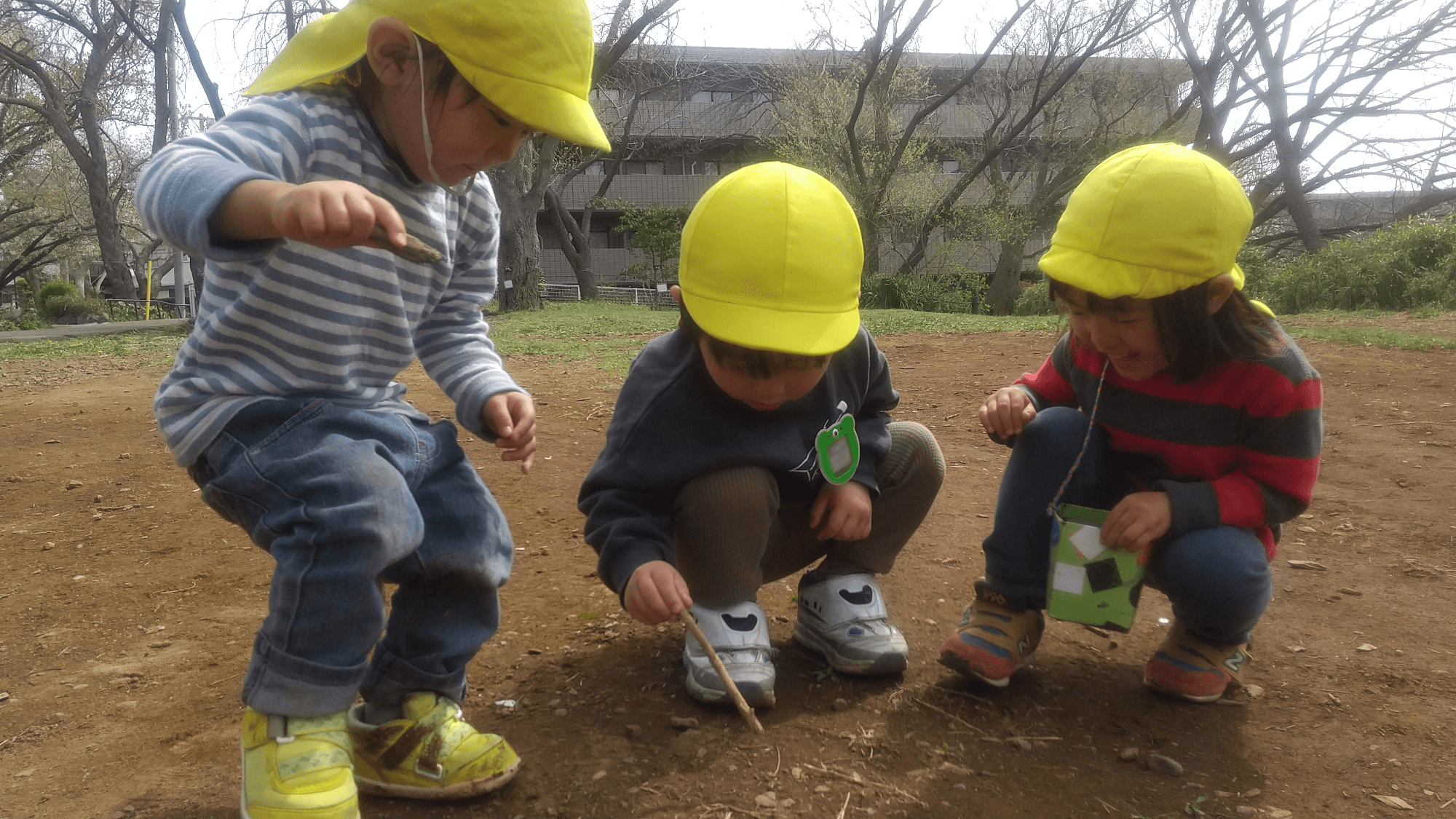 馬場どろんこ保育園では、センス・オブ・ワンダーを保育目標に掲げ、自然の中での実体験から不思議や驚き、喜び等、様々な心の動きを経験し、そこから多くのことを学んでいけるように意識して保育を行っています。