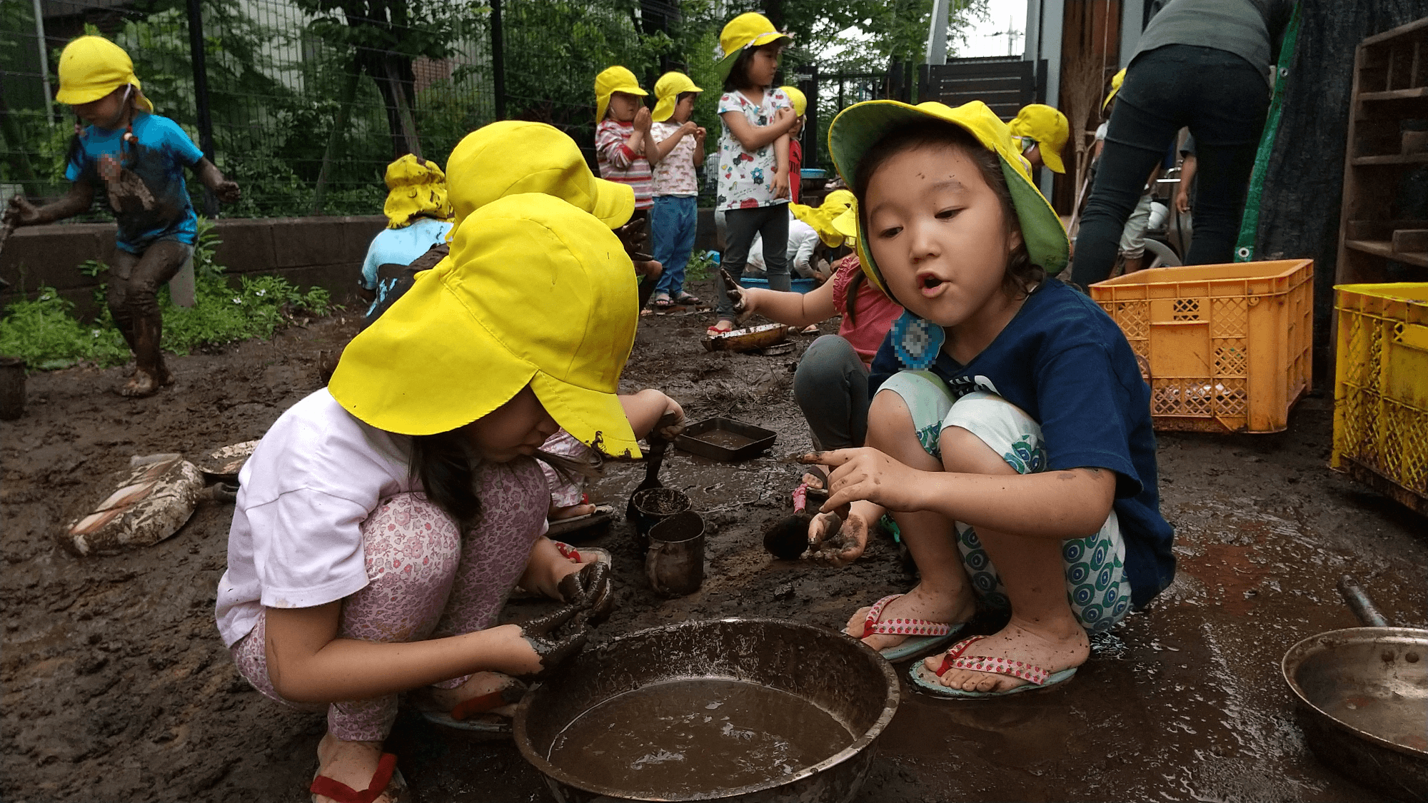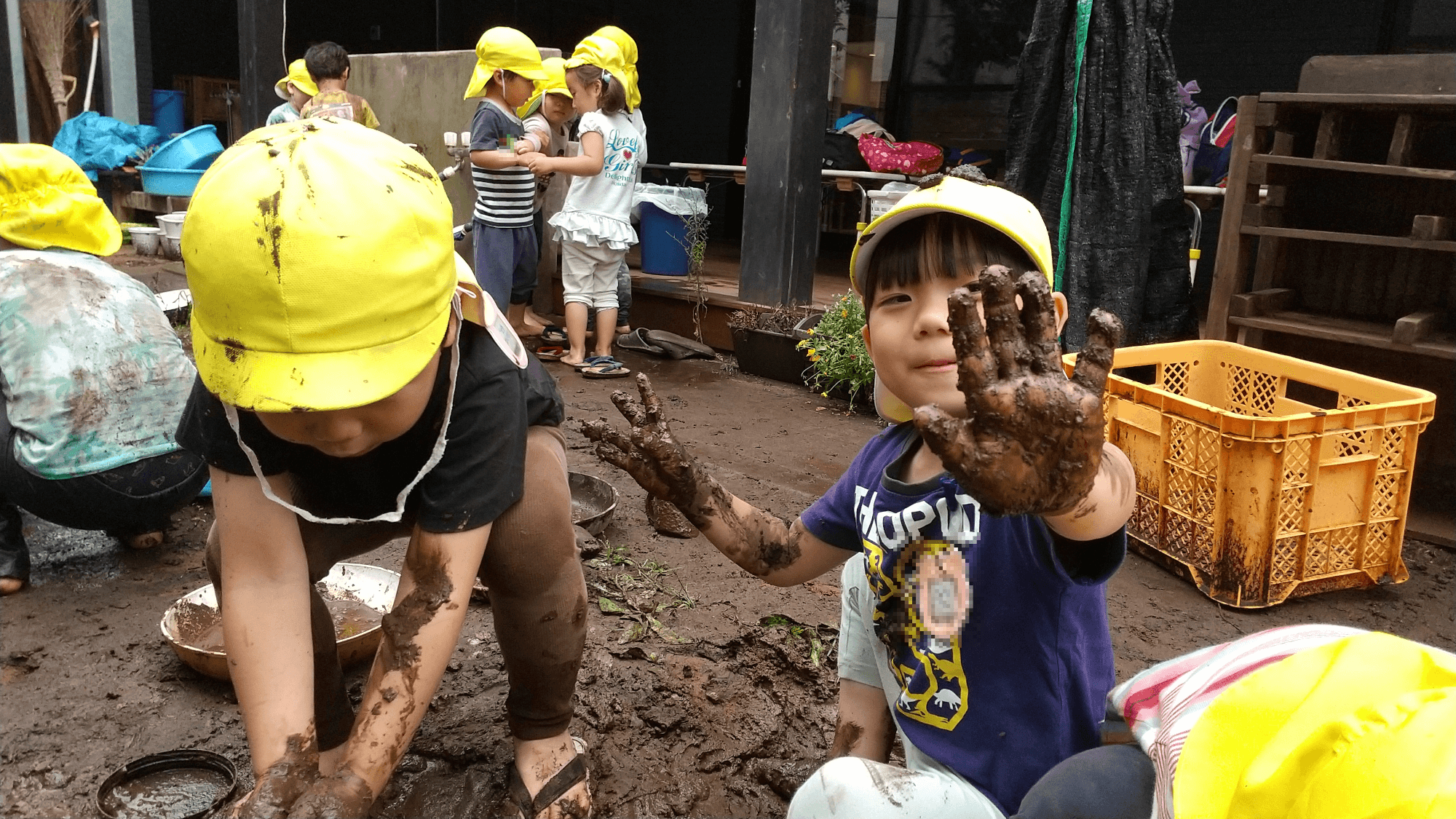 泥や水は自由に形を変えて遊べ、子どもたちにとって身も心も開放できる最高の遊びのツールです。