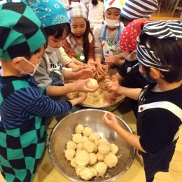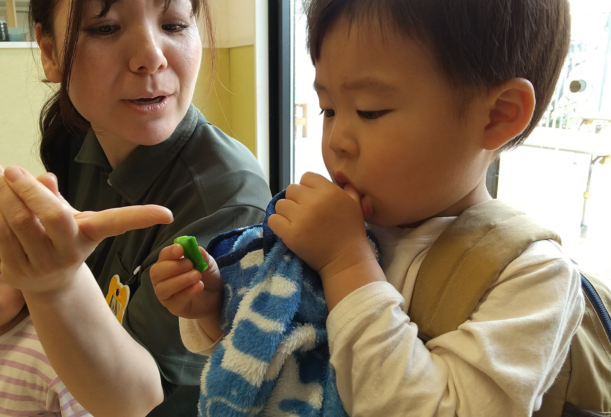 茹で終わると、煮汁が緑色になっていることを発見した子が「みどりだよ!」と友だちに話していました。様々なことに興味を示し、発見し、驚いたことを友だちと共有する子どもたちの姿を見ることができました。